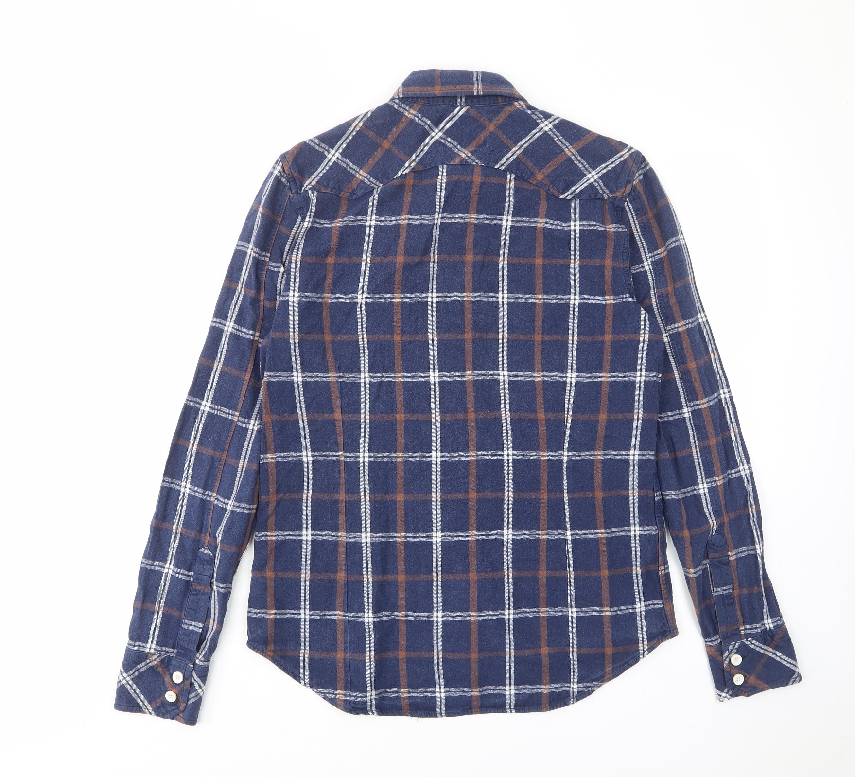 Mens Blue Plaid Cotton Button-Up Size S Collared Button - Pockets, Buttons