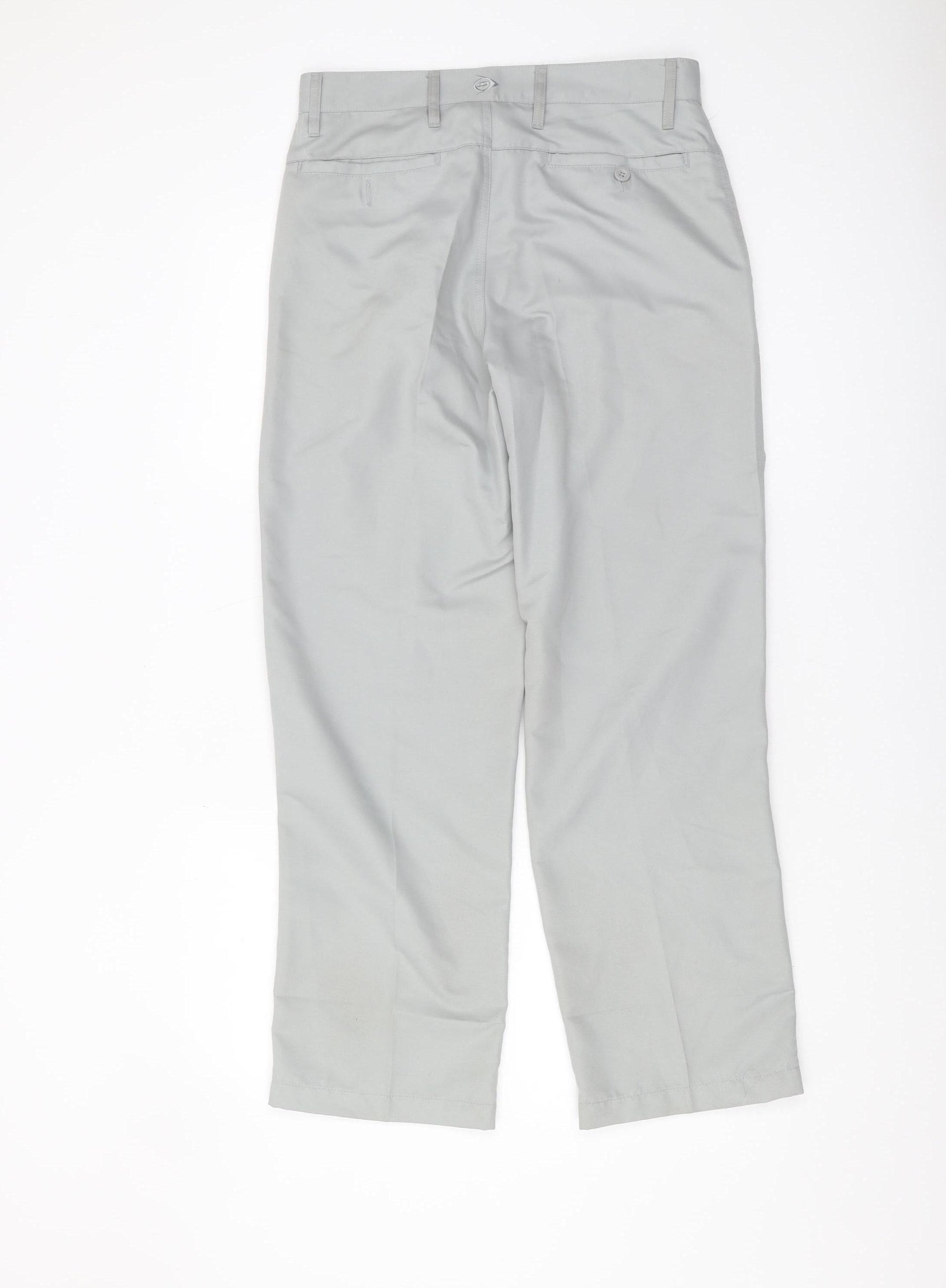Introducing the stylish Dunlop Men's Grey Chino Trousers, tailored for modern comfort. Crafted from 100% polyester, these versatile chinos offer both durability and softness. The straight leg style complements any attire, making it ideal for casual outings or smart-casual occasions. Featuring a classic flat front design and regular fit, these trousers ensure ease of movement without compromising on style. The traditional button and zip closure adds to the timeless appeal, while the elegant grey hue blends seamlessly with a variety of tops and shoes. Perfect for machine washing, maintaining these chinos is effortless. In superb condition with minimal signs of wear, these trousers bring sophistication to your wardrobe. Experience unparalleled comfort with Dunlop's renowned craftsmanship.