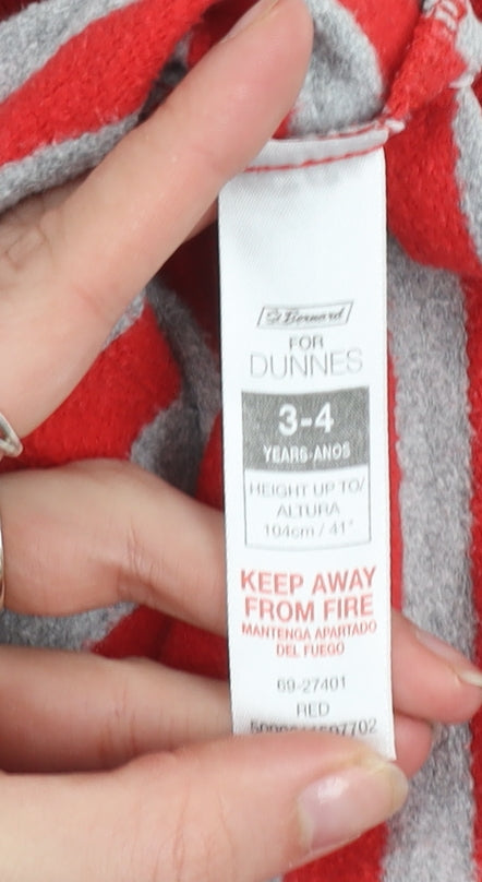 Rev up your little one's wardrobe with this fun and cosy Dunnes boys hoodie featuring the beloved Cars character Lightning McQueen. Designed in a striking red and grey stripe, this pullover hoodie captures the excitement of racing while keeping your child comfortable and warm. The 'Racing Team' slogan and Lightning McQueen graphic print on the front add a playful touch that fans of the Cars franchise will love. Crafted from a soft and breathable blend of 96% cotton and 4% viscose, this hoodie provides both comfort and durability—perfect for everyday wear, playtime, or school days. The fabric is gentle on the skin and easy to care for, being machine washable for added convenience. The ribbed cuffs and hem offer a snug fit, while the hood adds extra warmth for cooler days.This long-sleeve pullover hoodie is ideal for the Autumn and Winter months, making it a great layering piece. The playful colours and bold design make it a standout addition to any young wardrobe. Whether teamed with jeans, joggers, or shorts, this Lightning McQueen hoodie adds a cheerful, energetic look to any outfit. Perfect for active youngsters who love racing adventures, this hoodie is sure to become a favourite. In excellent pre-loved condition, it shows minimal signs of wear and still retains vibrant colour and shape. A wonderful choice for fans of Disney’s Cars movie franchise.
