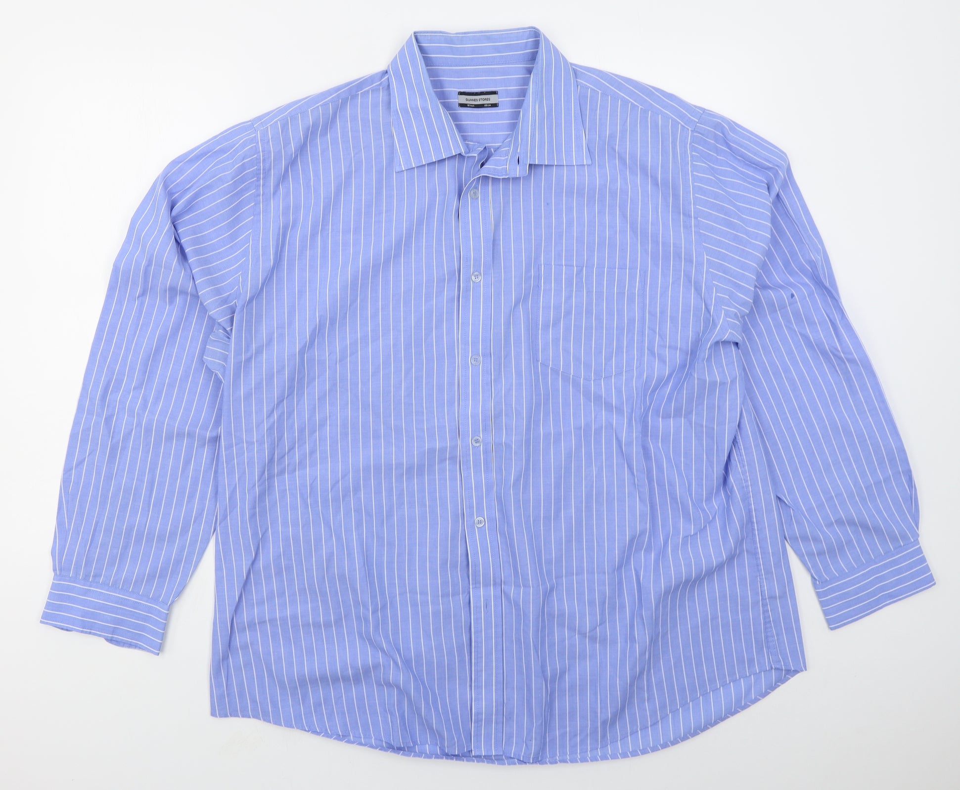 Thomas Nash Men's Blue Striped 18in Pure Cotton Long Sleeve Dress Shirt