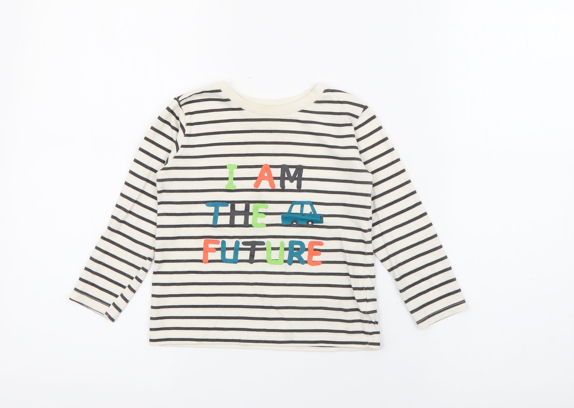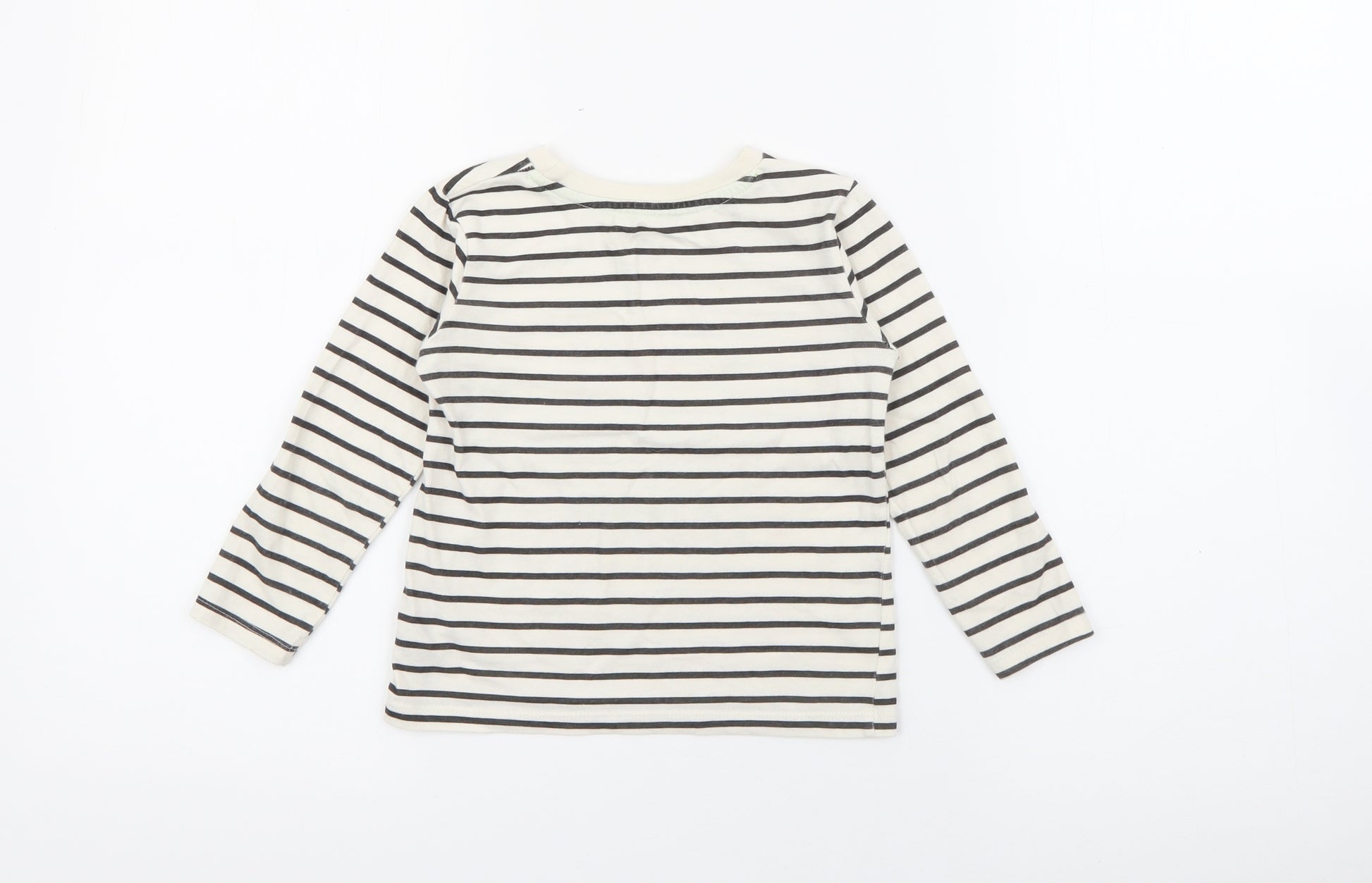 Baby White Striped Cotton Pullover T-Shirt Size 18-24 Months Crew Neck