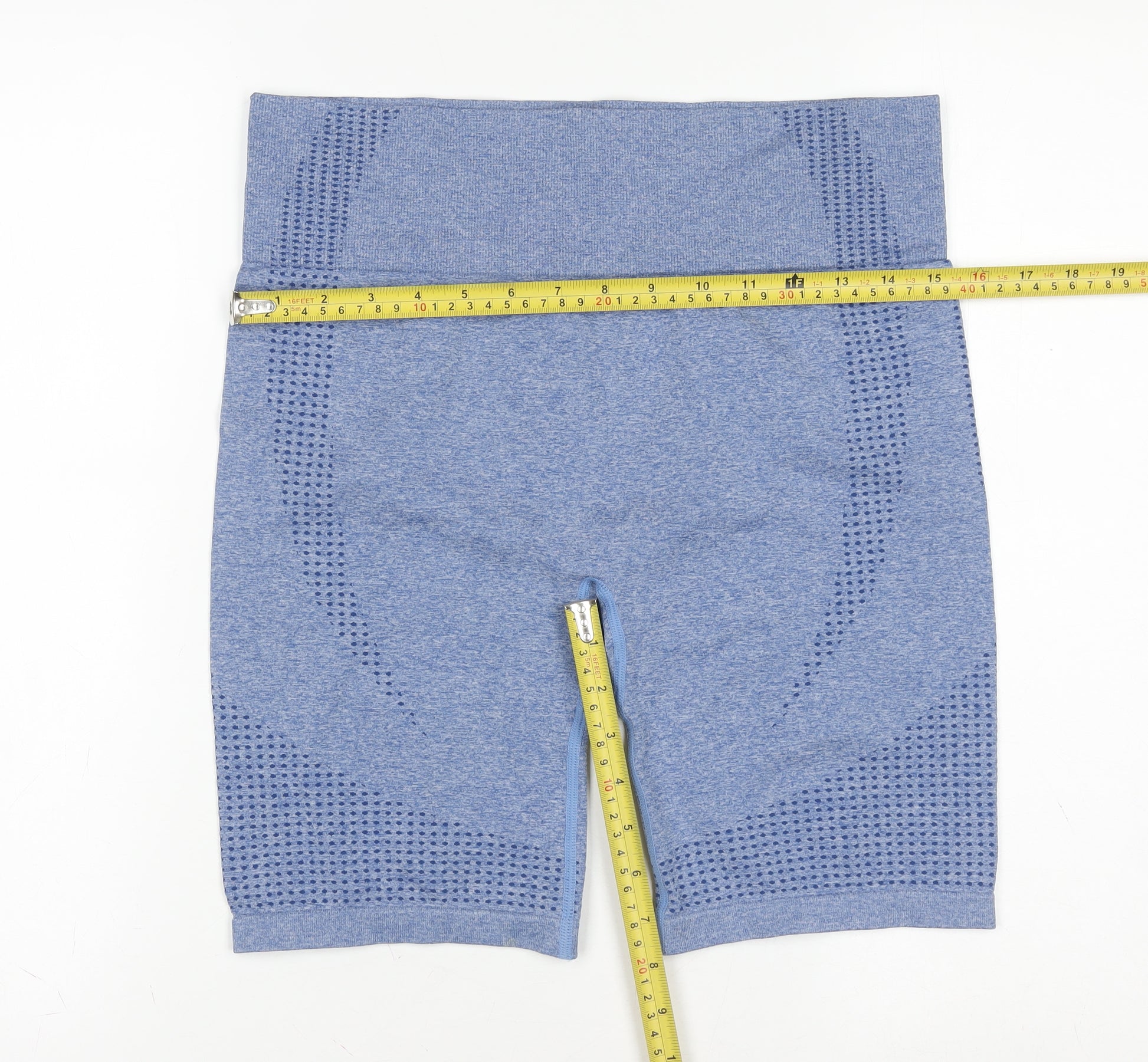 Step up your workout game with these blue biker-style activewear shorts from Dunnes Stores Performance Sport collection. Designed for comfort and flexibility, these shorts are perfect for everything from gym sessions to yoga classes or outdoor runs. Crafted from a high-quality stretch jersey fabric blend of 60% nylon, 34% polyester and 6% elastane, they deliver an ideal balance of support, breathability and movement. The fabric's moisture-wicking properties keep you cool and dry during even the most intense workouts, while the seamless construction and elasticated waist ensure a smooth, supportive fit that flatters your silhouette. The biker length adds extra coverage and comfort for cycling or training. Finished in a modern marl blue tone, these versatile shorts easily pair with your favourite performance tops or hoodies for effortless sporty style. Whether you're hitting the gym, joining a yoga class, or going for a run, these Dunnes Stores active shorts are made to move with you. Machine washable for easy care and made to last, they are a reliable choice for your active wardrobe. In excellent condition with minimal signs of wear, this pair offers premium performance at a fantastic price, making them a smart addition to any workout collection. Great for athletes, fitness enthusiasts, and anyone who loves comfortable activewear that performs as good as it looks.