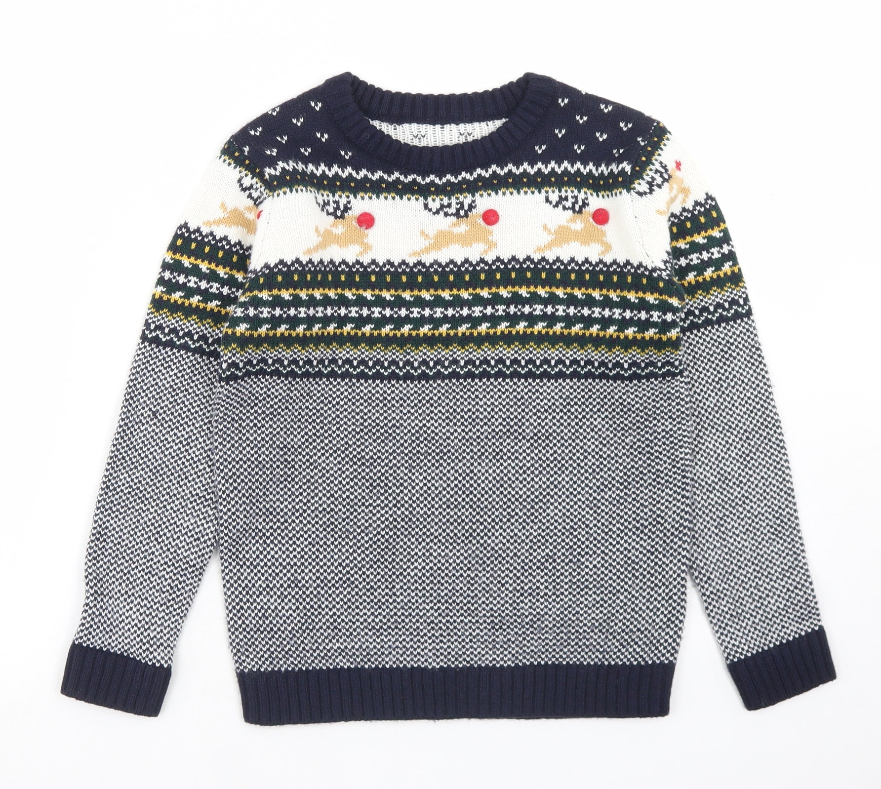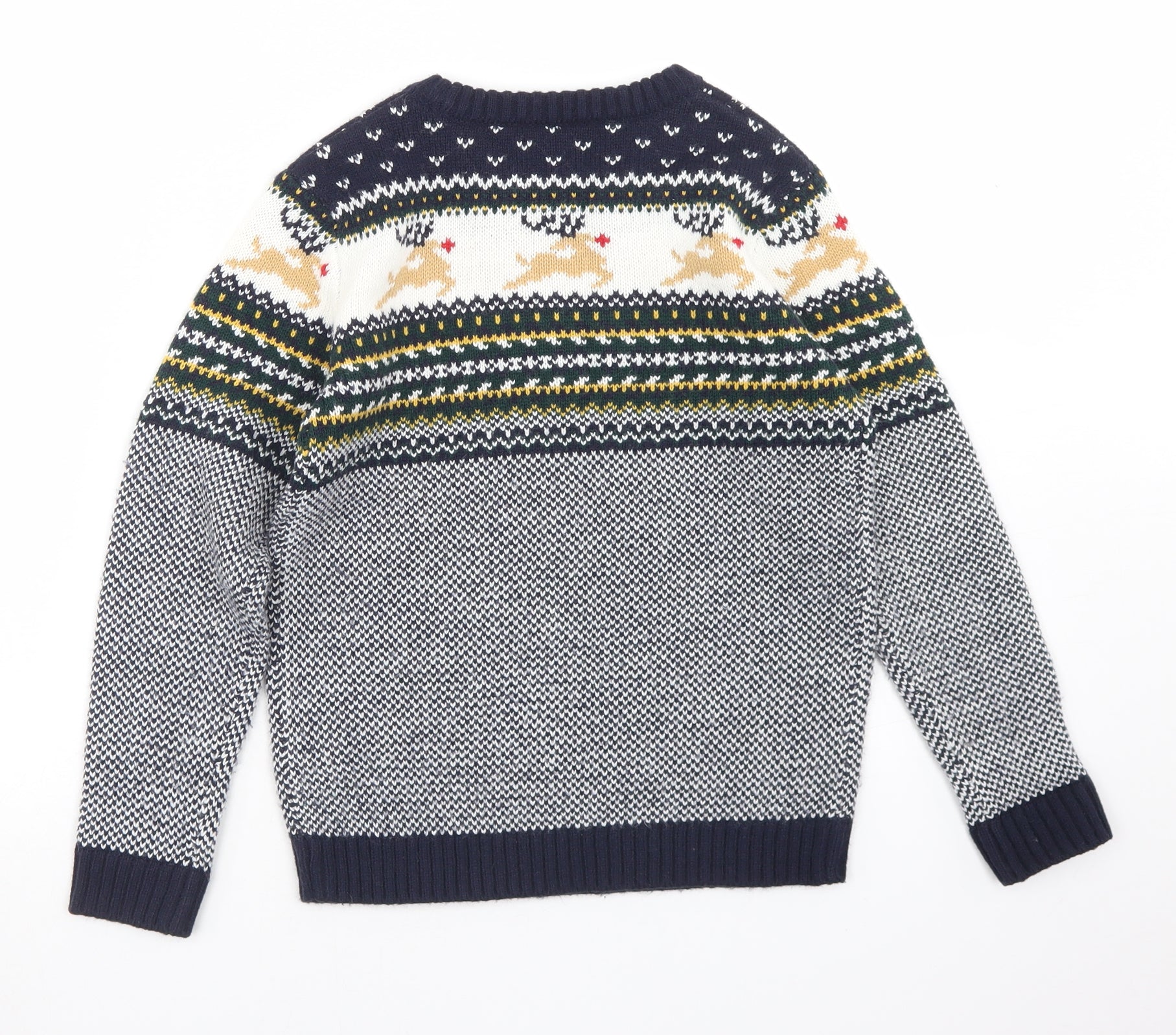 Boys Blue Crew Neck Fair Isle Acrylic Pullover Jumper Size 7-8 Years - Christmas