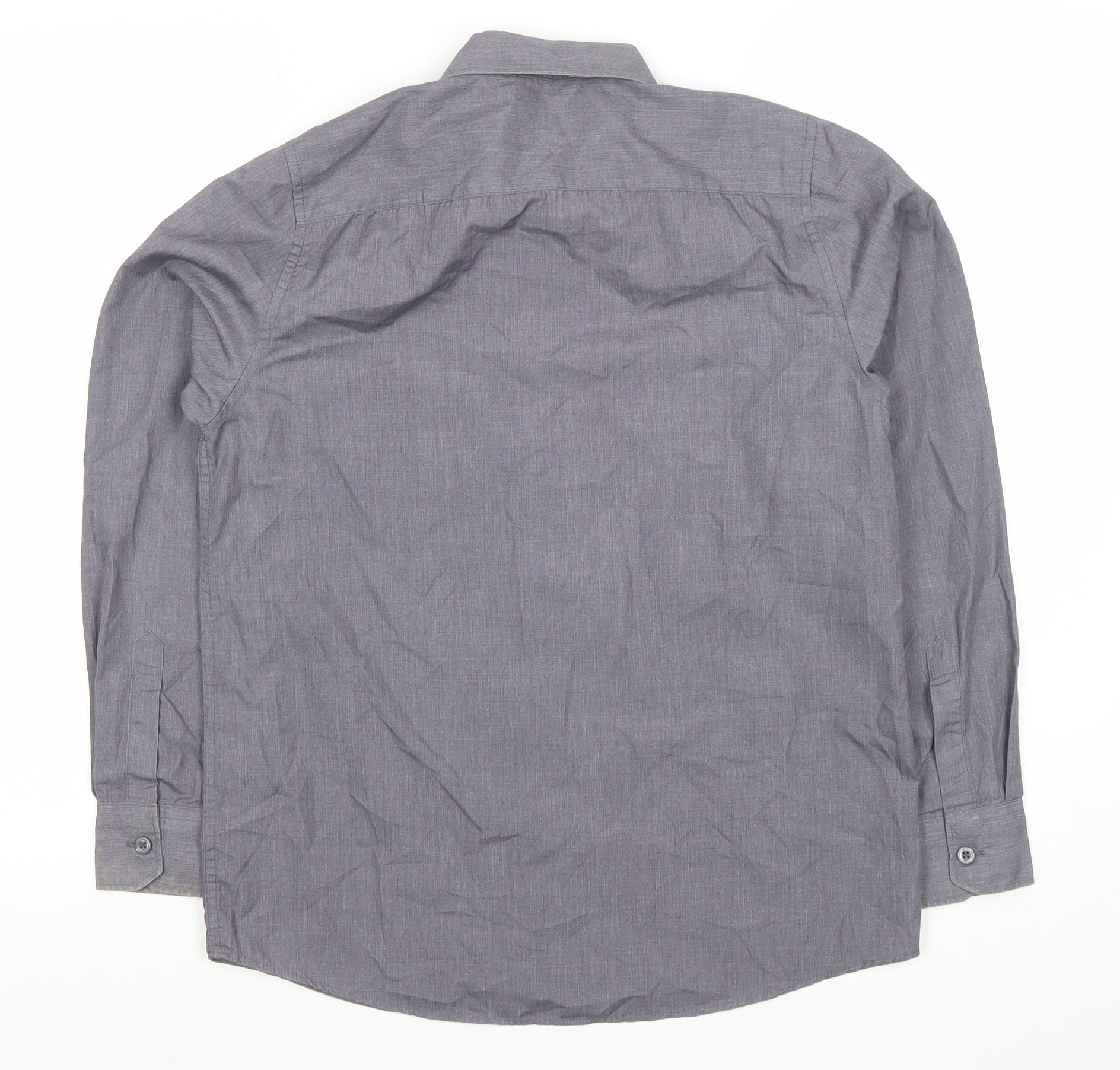 DUNNES STORES Boys Grey Button-Up Long Sleeve Shirt 13-14 Years Classic Fit