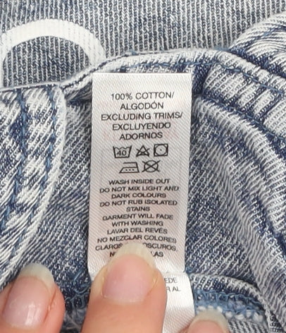 Girls Blue Denim Dungaree 6-7 Years Floral 100% Cotton
