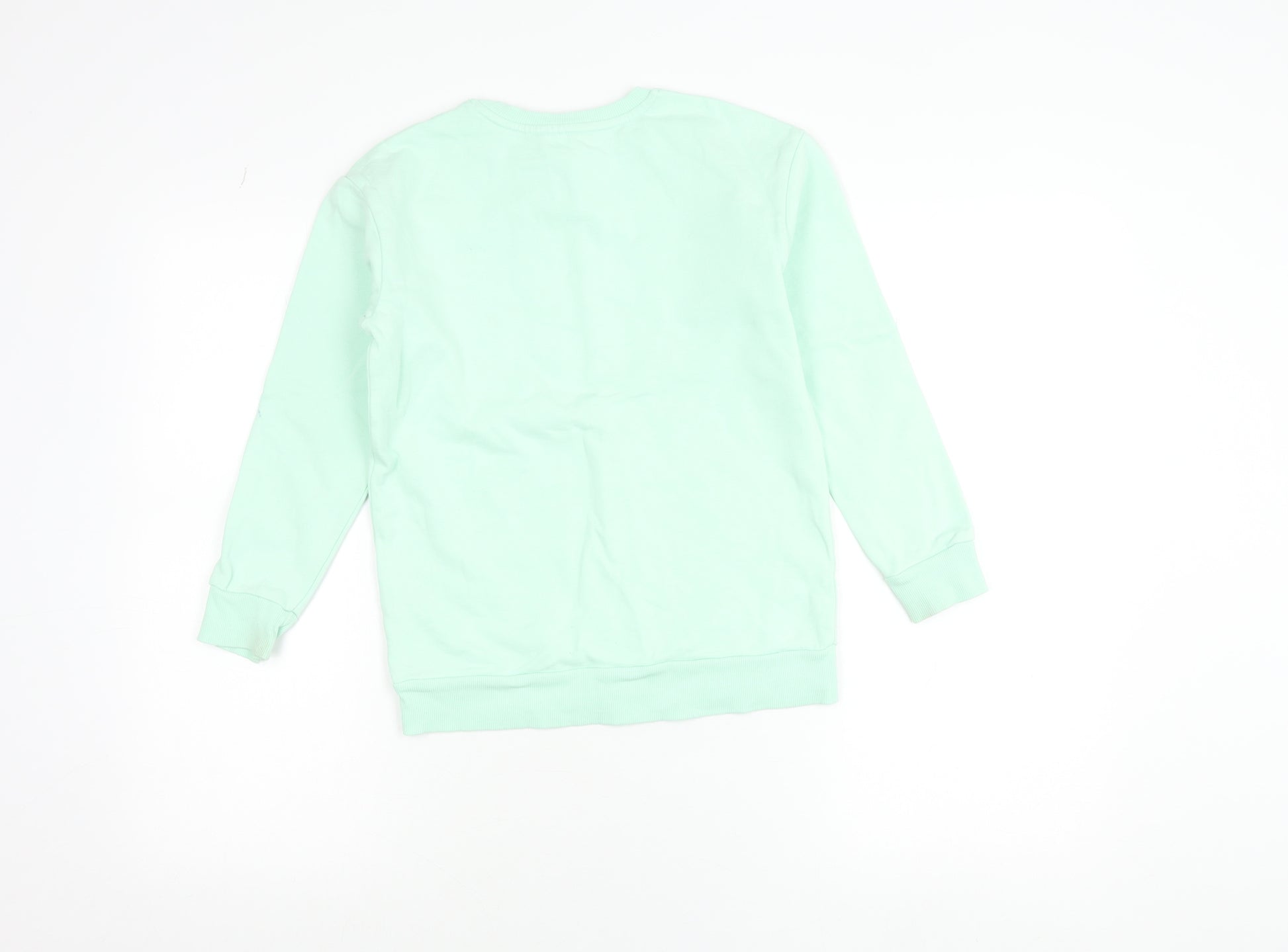 Brighten up your child’s wardrobe with this adorable Dunnes Stores Girls Green Pullover Jumper. Designed in a refreshing mint green tone, this cosy piece features a playful Care Bears motif on the front, making it a fun and cheerful addition to any casual outfit. The eye-catching character design, paired with gold star and shamrock accents, captures an irresistibly cute and positive vibe that kids will love to wear again and again. Expertly crafted from 100% cotton, this jumper ensures breathability and softness against the skin, perfect for active youngsters. The natural cotton material also provides exceptional comfort and durability while remaining easy to care for — simply toss it in the washing machine for everyday convenience. The crew neckline and ribbed cuffs offer a snug yet comfortable fit, helping to keep warmth in during those cooler days. This long-sleeve pullover is ideal for layering over T-shirts in crisp weather or worn alone during spring or autumn. Whether it’s for weekend adventures, parties, or relaxed school days, this versatile piece guarantees all-day comfort and effortless style. Made by Dunnes Stores, it combines reliable quality with a lively design that children can proudly show off. The jumper fits approximately ages 9–10 years, suitable for chest sizes 27–28.5 inches (69–72 cm). With its charming cartoon print and lightweight cotton construction, this Dunnes Stores girls’ jumper is an excellent choice for adding a touch of playful personality to any outfit. Ideal as a casual layering piece, it’s easy to match with jeans, leggings, or skirts, offering endless outfit possibilities. Conditioned as 'Excellent', this piece shows minimal signs of previous wear and remains vibrant and ready to enjoy — perfect for a pre-loved yet stylish wardrobe update. This jumper makes a brilliant choice for Care Bears fans and those who love comfy, colourful fashion with character and joy in every stitch.