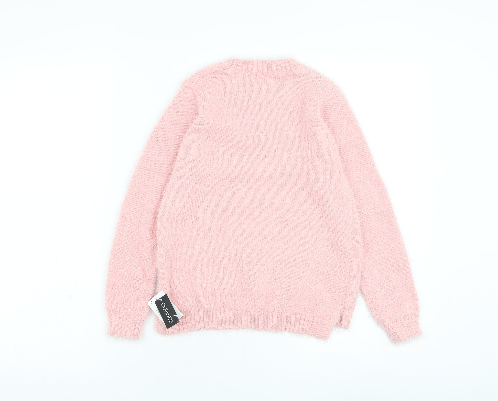 Girls Pink Round Neck Acrylic Pullover Jumper Size 9 Years Pullover - Unicorn