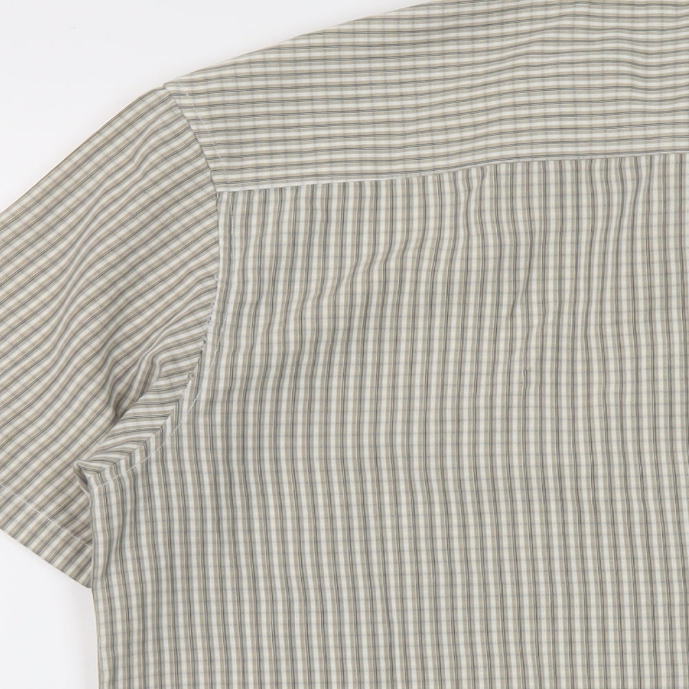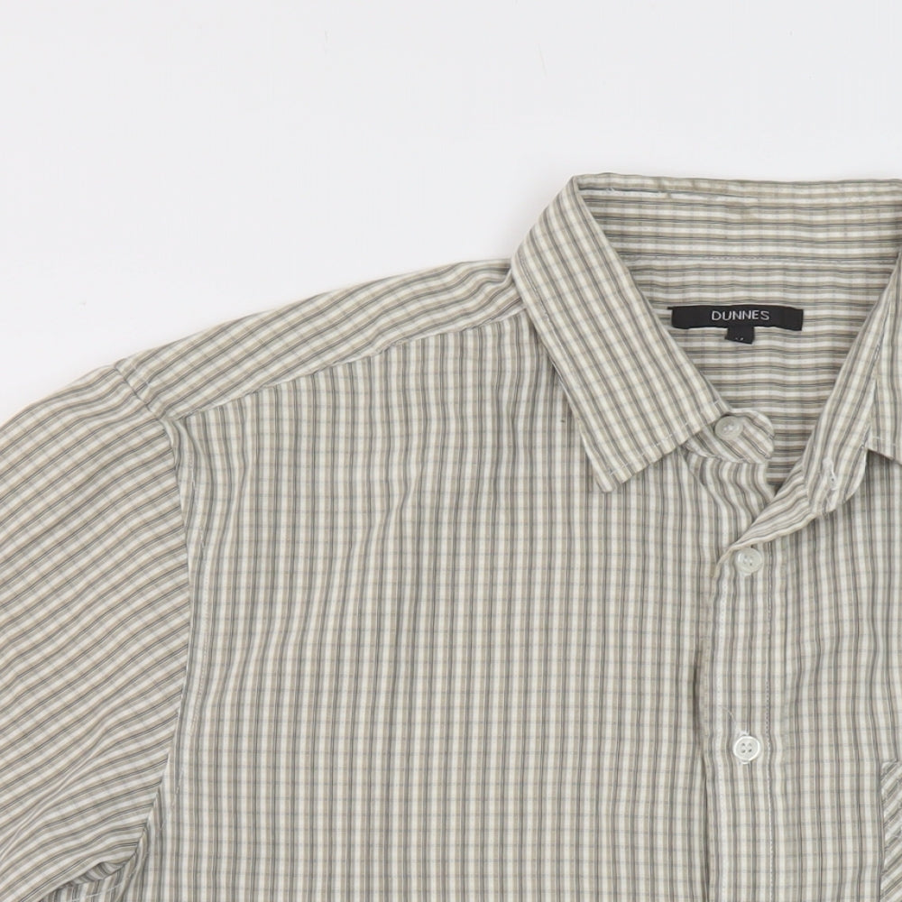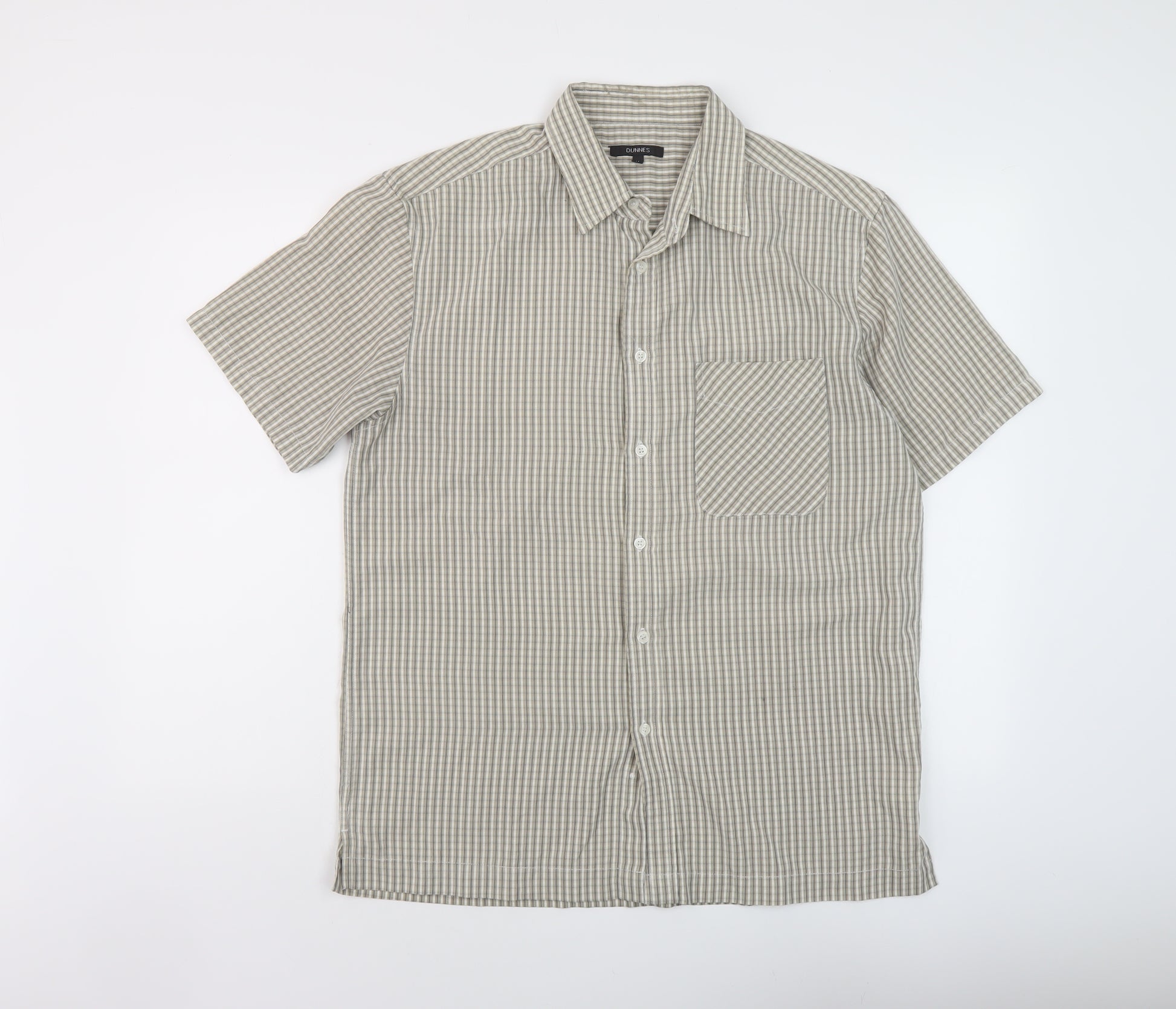 Mens Beige Geometric Polyester Button-Up Size M Collared Button