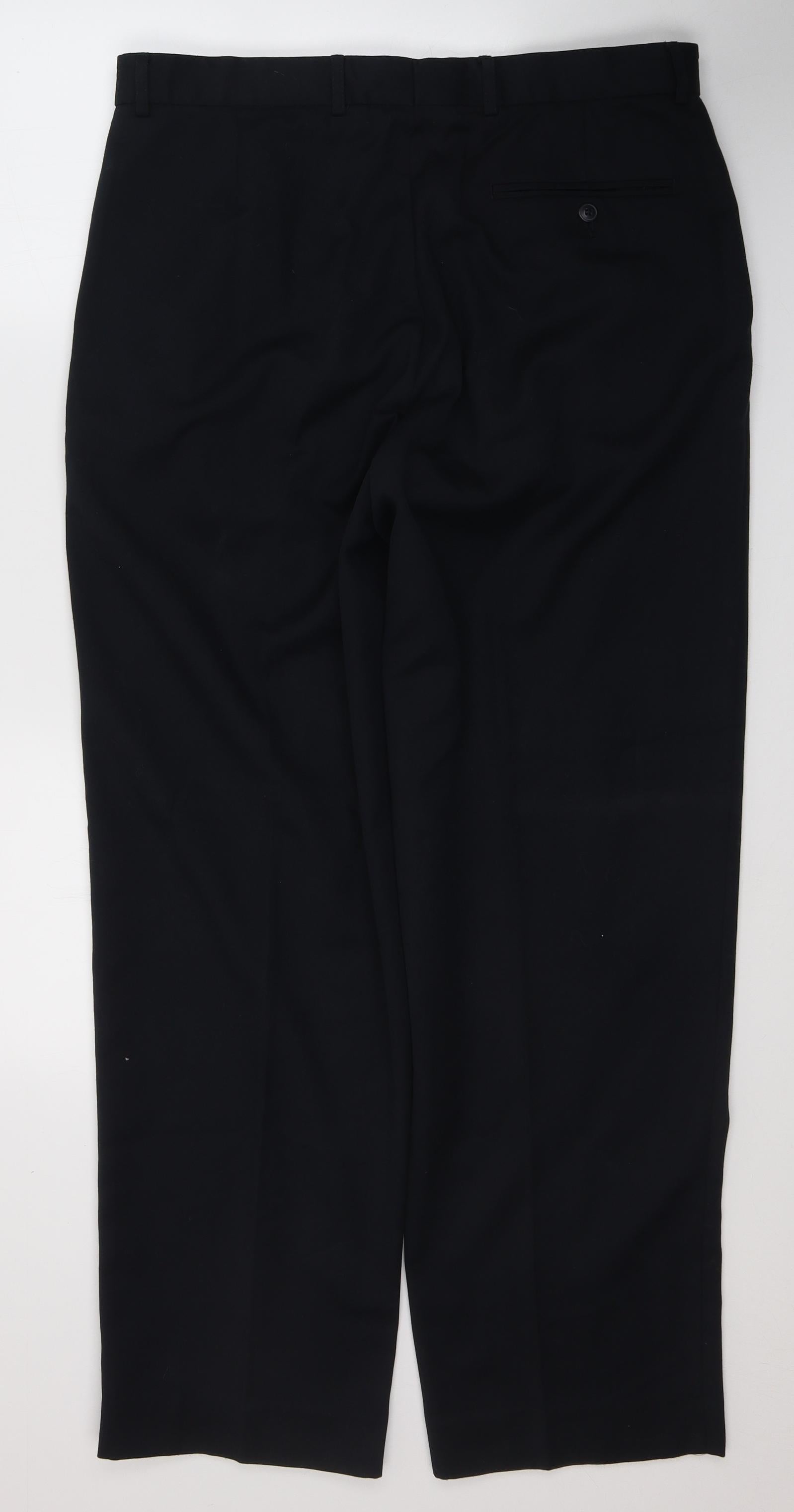 Mens Blue Polyester Trousers Size 36 in L31 in Regular Button