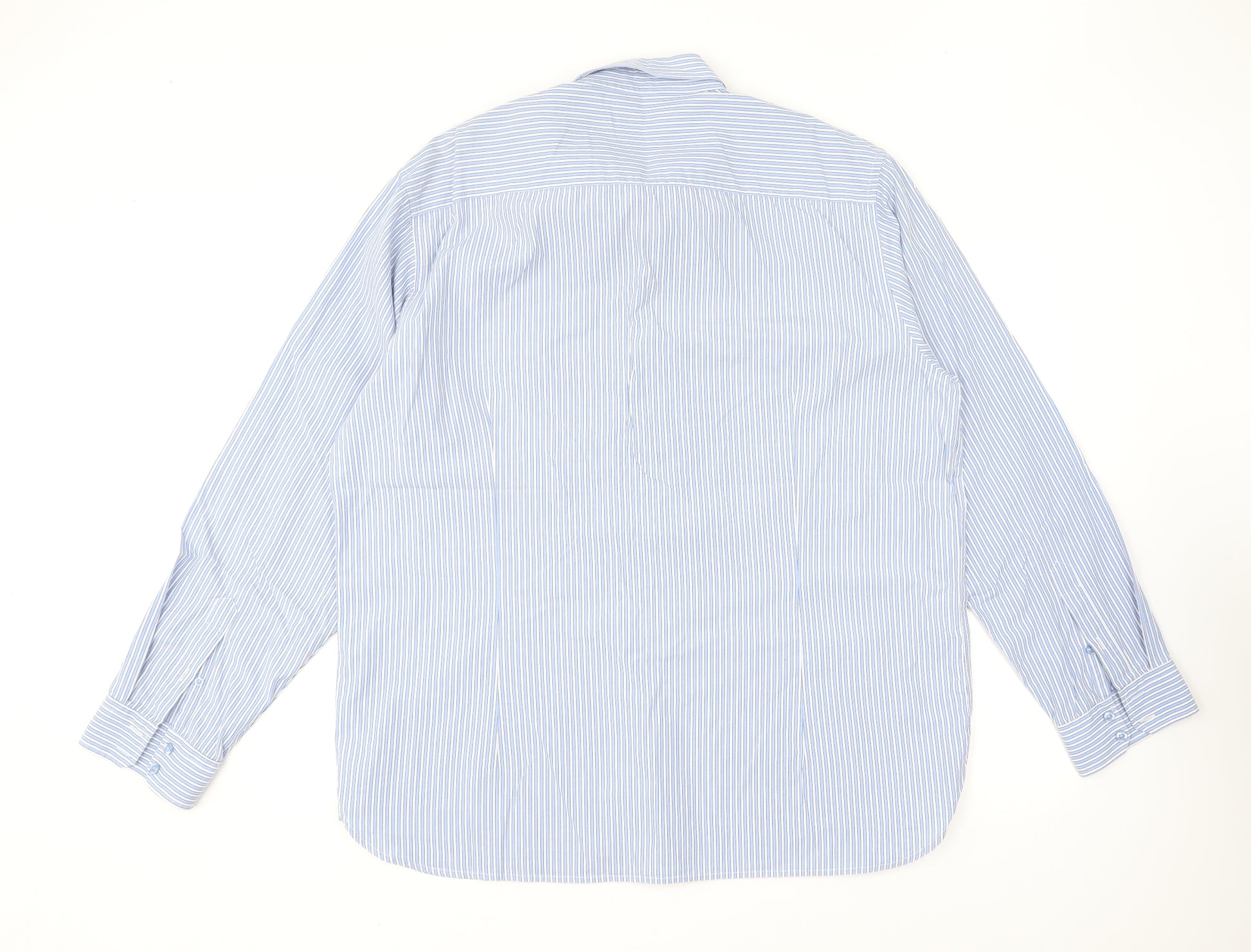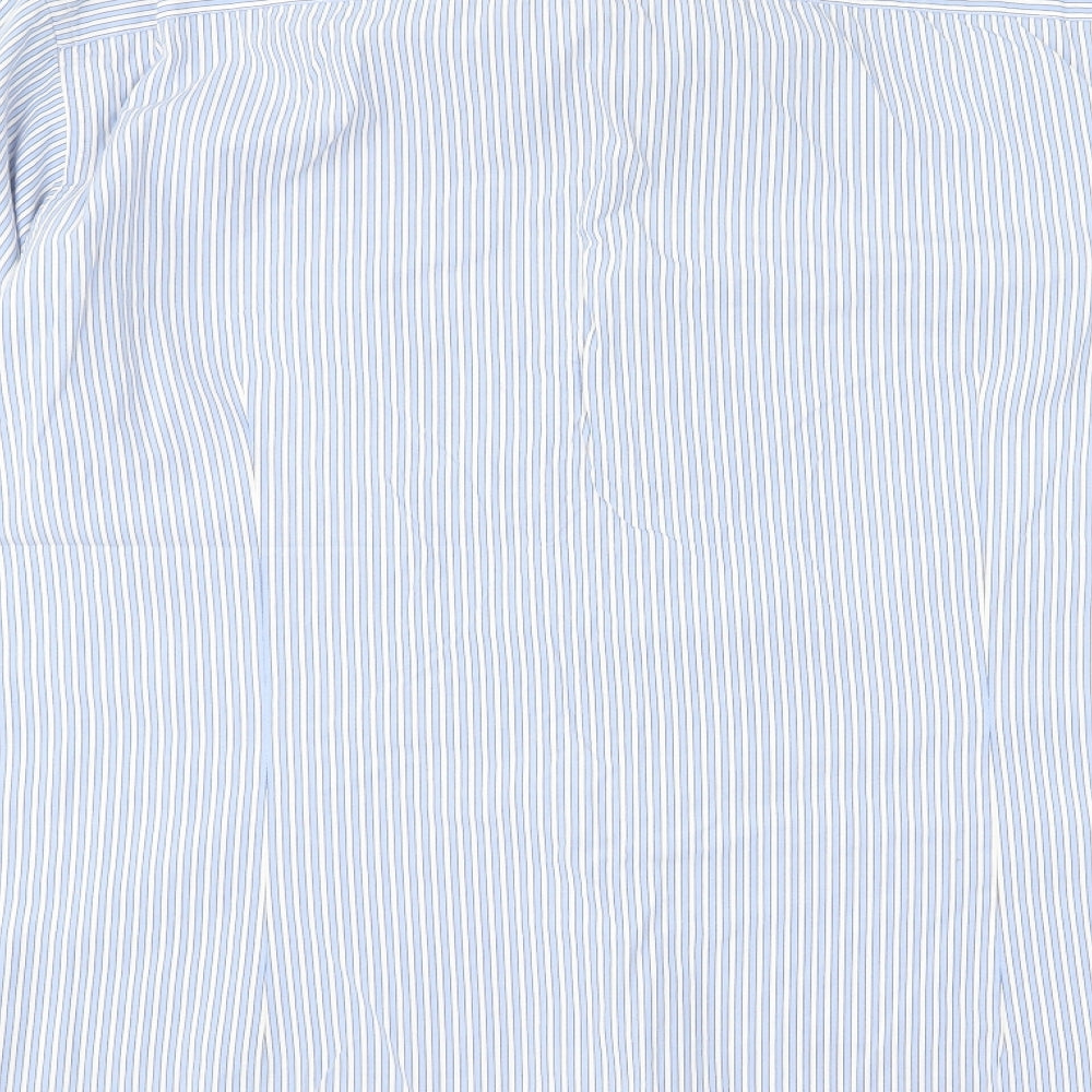Mens Blue Striped Cotton Button-Up Size 2XL Collared Button
