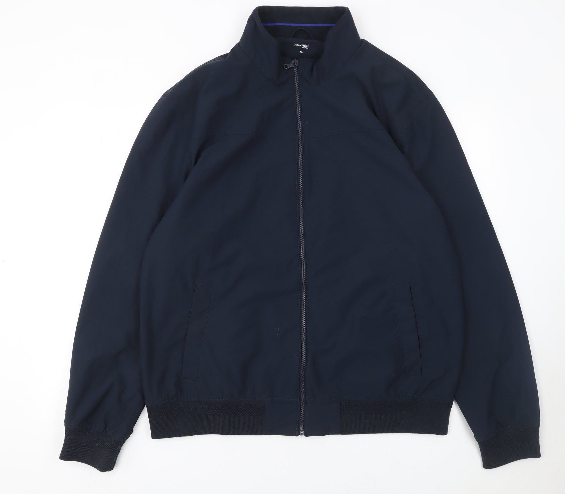 This Dunnes Stores men's basic jacket offers a timeless classic design in a versatile navy-blue tone, ideal for both casual and active outings. Crafted from 100% polyester, it delivers a lightweight and comfortable fit that's easy to care for and perfect for daily wear. The jacket features a full front zip closure, a smart stand-up collar, and side pockets for practical storage. With ribbed cuffs and hem, it provides a snug, secure fit that helps block out cooler breezes, making it suitable for spring and autumn weather. The interior is lightly lined for added comfort, complementing its breathable woven fabric that ensures long-lasting wear. Designed in a regular fit and sized XL, it suits men looking for a comfortable layer to top off casual outfits. The simple, clean aesthetic makes it easy to pair with jeans, joggers, or chinos for versatile styling. Despite showing light signs of wear at the cuffs, it remains in very good condition with all functional details intact. Machine washable for easy care, this jacket is a practical addition to any modern wardrobe, perfect for weekend walks, travel, or everyday errands. Offering a balance of quality, comfort, and understated style, this Dunnes Stores jacket represents excellent value for anyone after a reliable, no-fuss outerwear choice. A dependable pick for the contemporary man who likes simplicity and practicality in his clothing, this jacket is ready for countless everyday adventures while maintaining a neat, polished look.