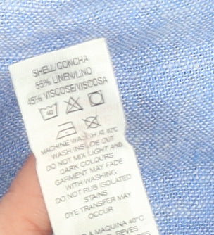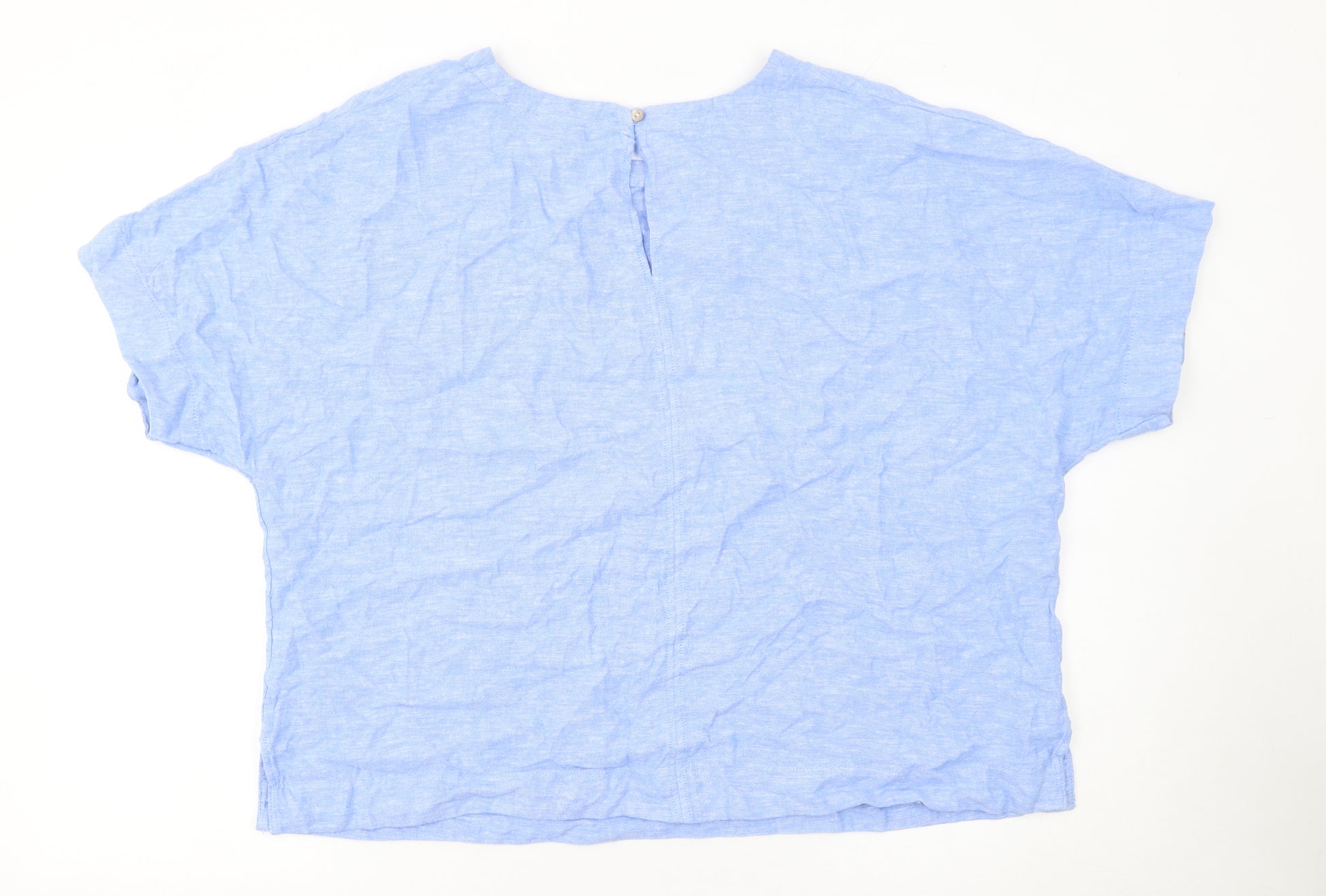 Women Blue Linen Blend Short Sleeve Blouse Size 16