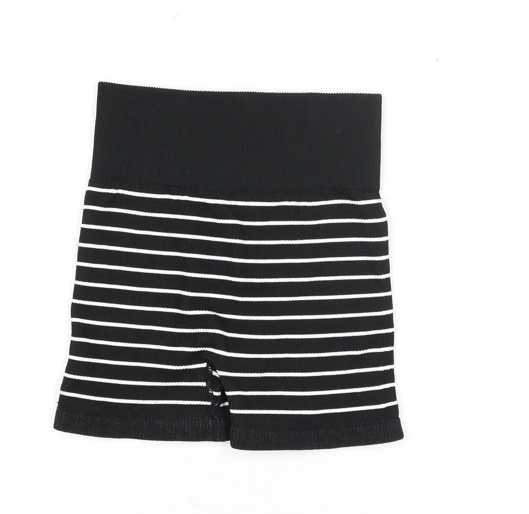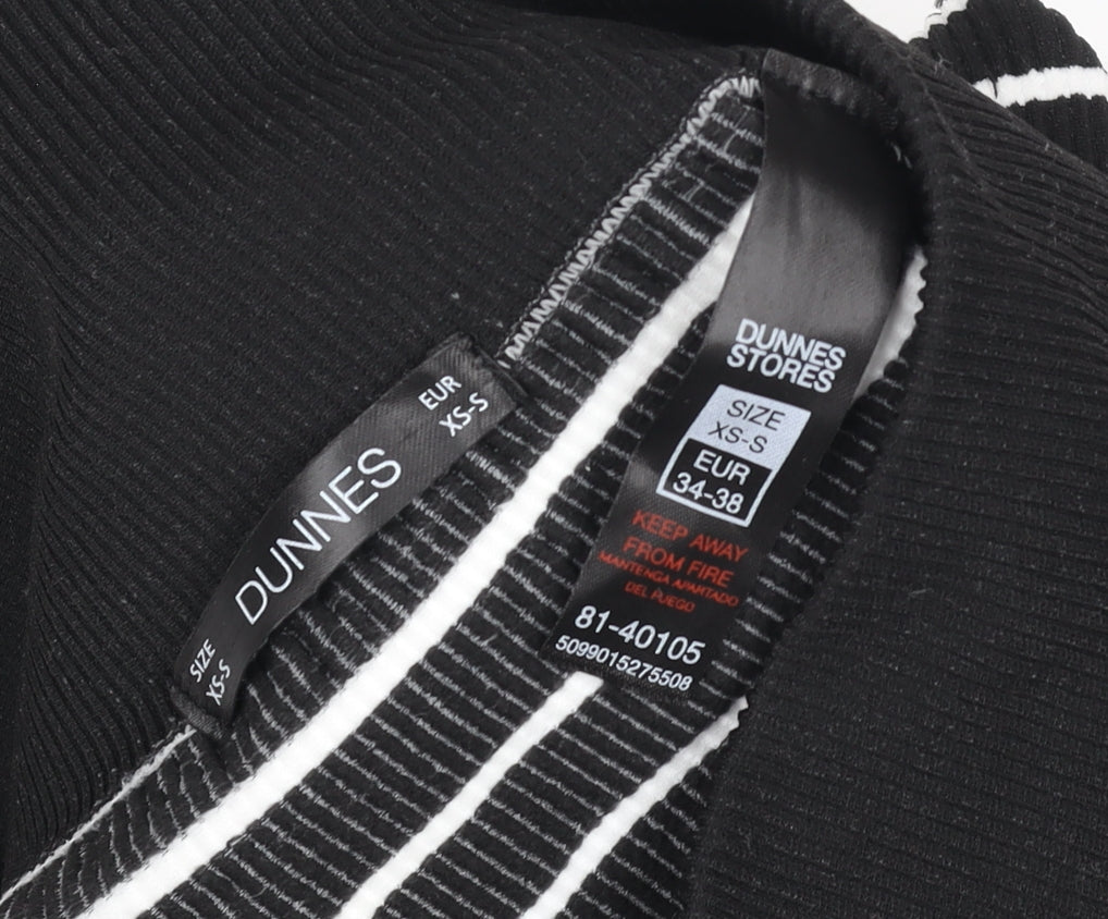 Add comfort and style to your wardrobe with these striking women’s striped biker shorts from Dunnes Stores. Designed in a sleek black hue with contrasting white horizontal stripes, these fitted shorts bring a modern yet versatile look suitable for everyday wear or active pursuits. Crafted from a high-stretch ribbed knit fabric made of polyamide and elastane, they feature a supportive high-rise waistband that offers a flattering, secure fit. The soft, lightweight material ensures excellent comfort and breathability, making them ideal for workouts, lounging, or layering under dresses. Their streamlined pull-on design provides ease of wear, while the subtle rib texture enhances both flexibility and firmness for a smoothing effect. With their knee-length style and slim fit, these shorts move effortlessly with your body during yoga, gym sessions, or running. The black and white striped pattern adds a timeless touch, perfect for mixing and matching with plain tops, gymwear, or casual street outfits. Durability and practicality combine in a pair of shorts that remains comfortable even during extended wear. Whether you’re pairing them with a loose tee for lounging or a crop top for an athletic edge, they adapt effortlessly to your needs. Machine washable and easy to care for, they maintain their shape and softness wash after wash. Ideal for those seeking a sleek, body-hugging style that doesn’t compromise on comfort, these biker shorts are perfect for women who value performance essentials that transition seamlessly from casual settings to active days. With minimal signs of wear and excellent overall condition, they make an affordable wardrobe addition you’ll reach for again and again.