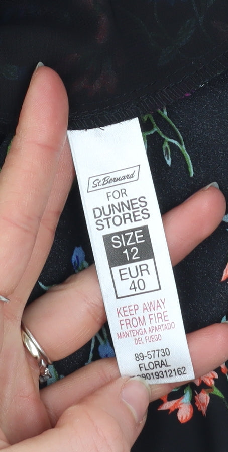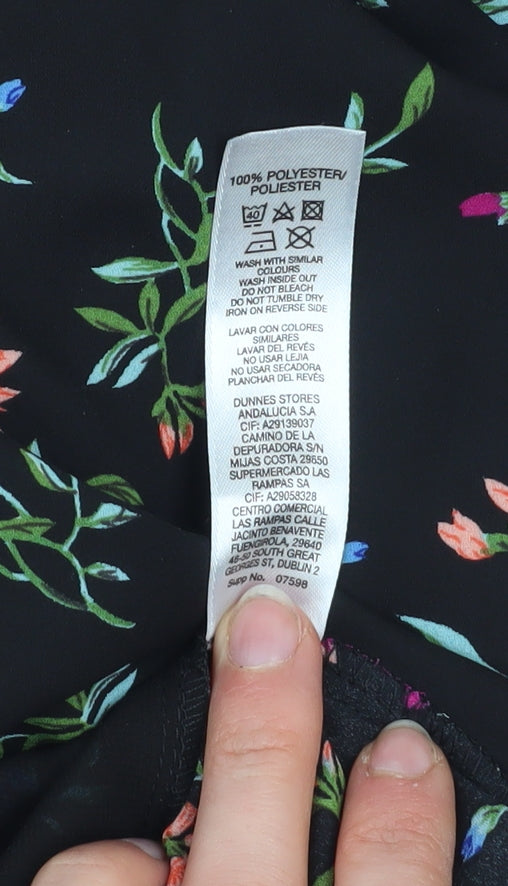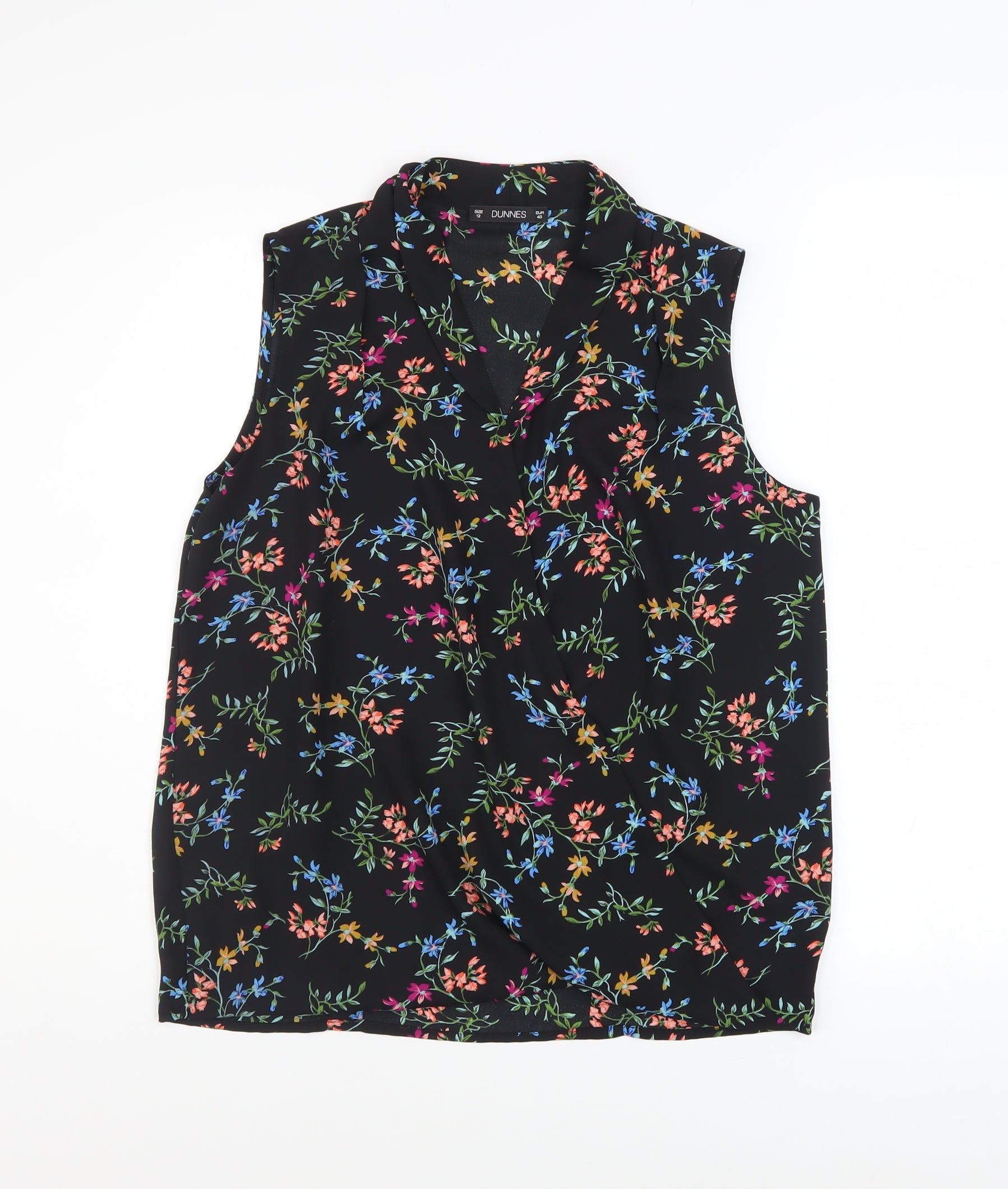 Brighten up your everyday wardrobe with this delightful Dunnes Stores women’s sleeveless blouse in a flattering tunic length. Crafted from 100% polyester, the lightweight woven fabric offers a comfortable, breathable feel perfect for seasonal wear. Designed in a stunning multicoloured floral pattern against a sleek black background, this blouse pairs easily with jeans, skirts, or tailored trousers for a variety of looks. The V-neckline with subtle collar detailing adds soft structure, offering elegance without compromising on comfort. Ideal for workwear, casual outings, or warm-weather days, the flowy silhouette ensures ease of movement and a flattering fit. The versatile design makes this blouse a wardrobe staple for any season, particularly spring and summer, while the easy-care, machine-washable fabric ensures fuss-free maintenance. Its pullover style allows effortless wear, fitting neatly under cardigans or blazers when layering is needed. Perfect for adding a touch of style to your daily look, this blouse transitions seamlessly from office-ready chic to relaxed weekend comfort.This piece is in excellent pre-owned condition with no visible signs of wear or damage, showcasing Dunnes Stores’ commitment to quality and timeless design. Whether you aim for a polished business look or prefer a laid-back floral charm, this blouse effortlessly combines practicality and style. A must-have addition for any fashion-conscious woman seeking effortless elegance and durability without compromising on everyday versatility. Grab this lovely Dunnes Stores tunic-style floral blouse size 12 today and refresh your collection with a piece that exudes confidence, colour, and charm — perfect for any modern wardrobe.