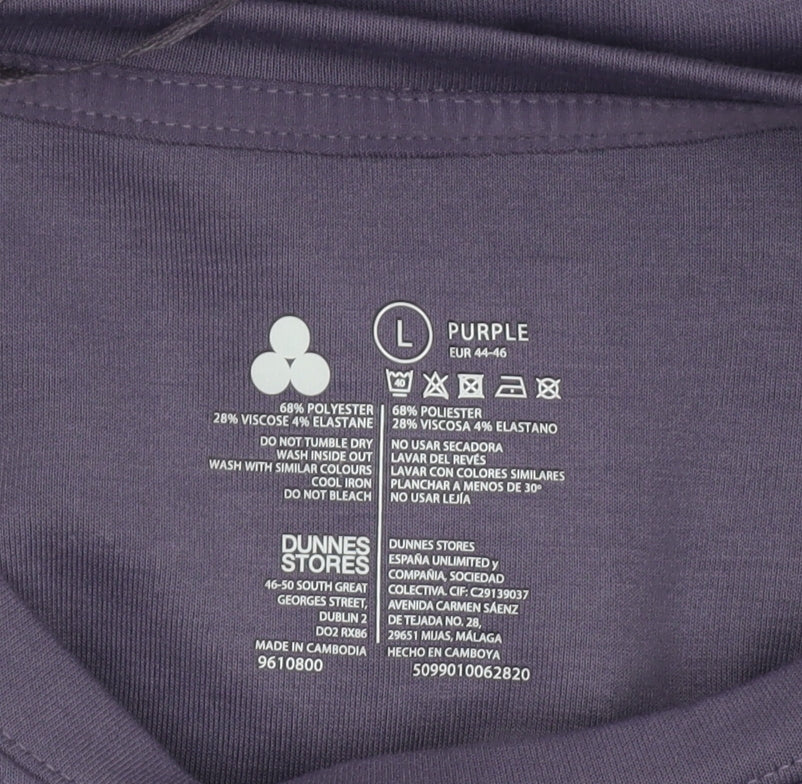 Step up your casual wardrobe with this Dunnes Stores women’s sweatshirt in a lovely deep purple tone. Crafted from a soft blend of polyester, viscose, and elastane, this sweatshirt offers the perfect combination of comfort, durability, and stretch. The fabric has a smooth finish and sits beautifully against the skin, ideal for layering in cooler months or wearing alone when the temperatures rise. The pullover design keeps it simple and easy to wear, while the classic crew neckline and long sleeves give it a timeless silhouette that flatters any figure. Designed in a relaxed fit, this sweatshirt offers ultimate comfort for everyday wear, whether lounging at home, heading out for errands, or enjoying a casual weekend look. The lightweight fabric also makes it suitable for all seasons, and the ribbed hem and cuffs ensure a securely fitted and stylish finish. Its minimalist design features no pattern, making it a versatile staple that pairs effortlessly with jeans, joggers, or skirts. Machine washable for easy care, this durable jumper maintains its shape and colour after every wash. The large size provides a comfortable fit for sizes around UK 16–18, offering ease of movement without compromising style. Whether you’re putting together a laid-back outfit or building a capsule wardrobe, this Dunnes Stores purple sweatshirt is a must-have piece that combines simplicity, softness, and timeless appeal. Perfect for women who appreciate uncomplicated, high-quality clothing that can transition effortlessly between seasons.