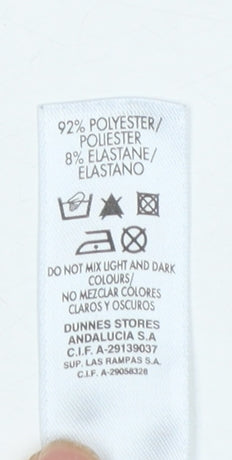 Elevate your wardrobe with this eye-catching Dunnes Stores women's wrap blouse featuring a bold animal print design in shades of black, grey, and pink. Crafted from a comfortable blend of polyester and elastane, this short sleeve top offers a soft, stretchy fit that flatters the figure while providing ease of movement. The wrap-style neckline creates a subtle V-shaped silhouette, adding sophistication and a hint of femininity to a lively patterned garment. Ideal for day-to-evening transitions, the top’s lightweight jersey fabric makes it perfect for spring, summer, and autumn wear, ensuring all-day comfort and breathability. The intricate design incorporates lace-inspired detailing over a leopard print motif, creating a distinctive and trendy look that easily pairs with trousers, skirts, or denim for casual or dressier occasions. With its pullover closure and regular fit, this blouse is both easy to wear and effortlessly stylish. Perfect for adding flair to your casual outings or for chic party wear, it captures a modern edge while remaining versatile enough for everyday use. In excellent pre-loved condition, this top shows minimal signs of wear and retains its original quality and structure. Whether you’re refreshing your casual collection or seeking a standout piece for evening styling, this Dunnes Stores wrap top will bring an instant fashion-forward appeal to any ensemble.
