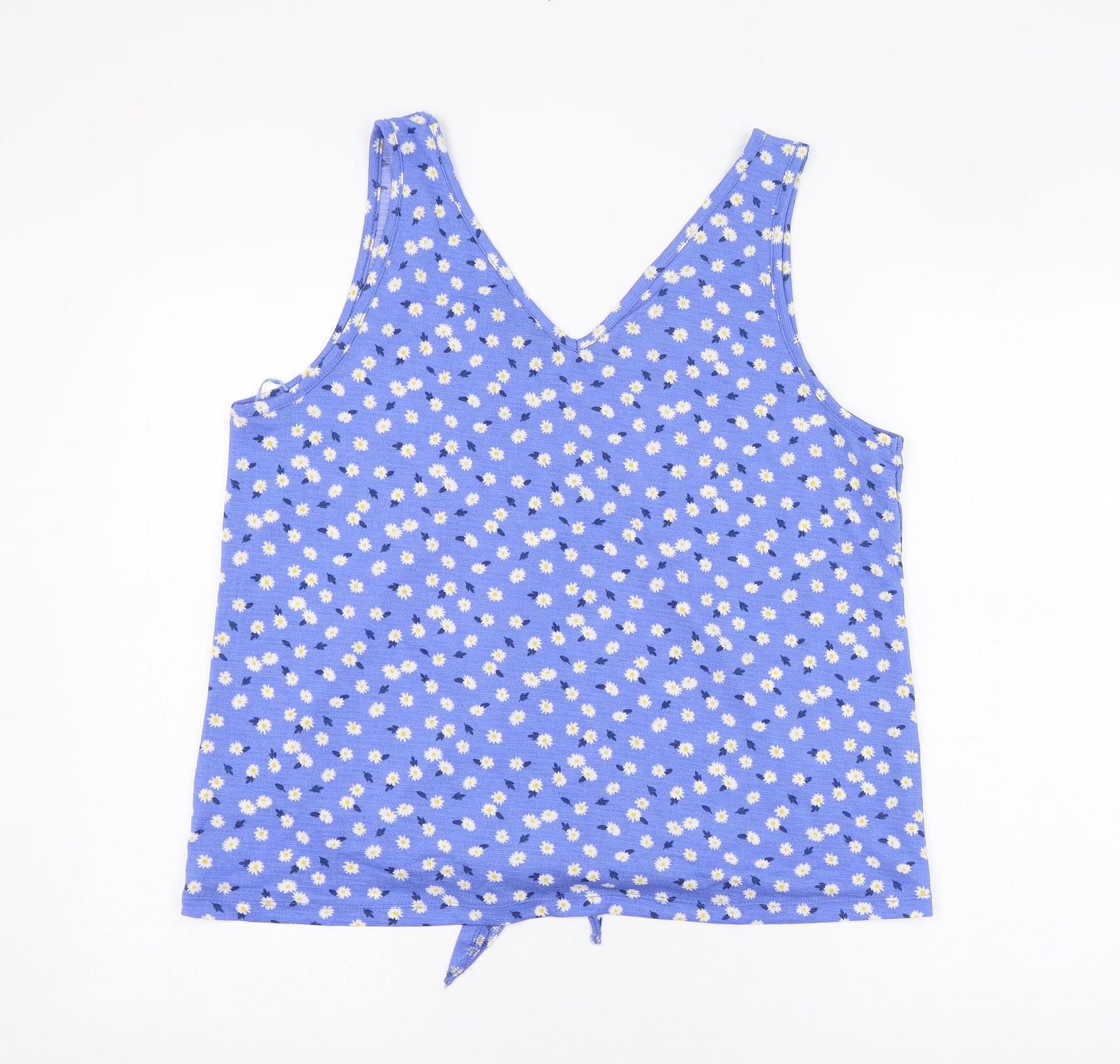 Womens Blue Floral Polyester Tank Size L V-Neck