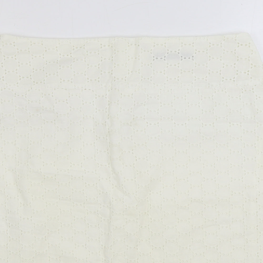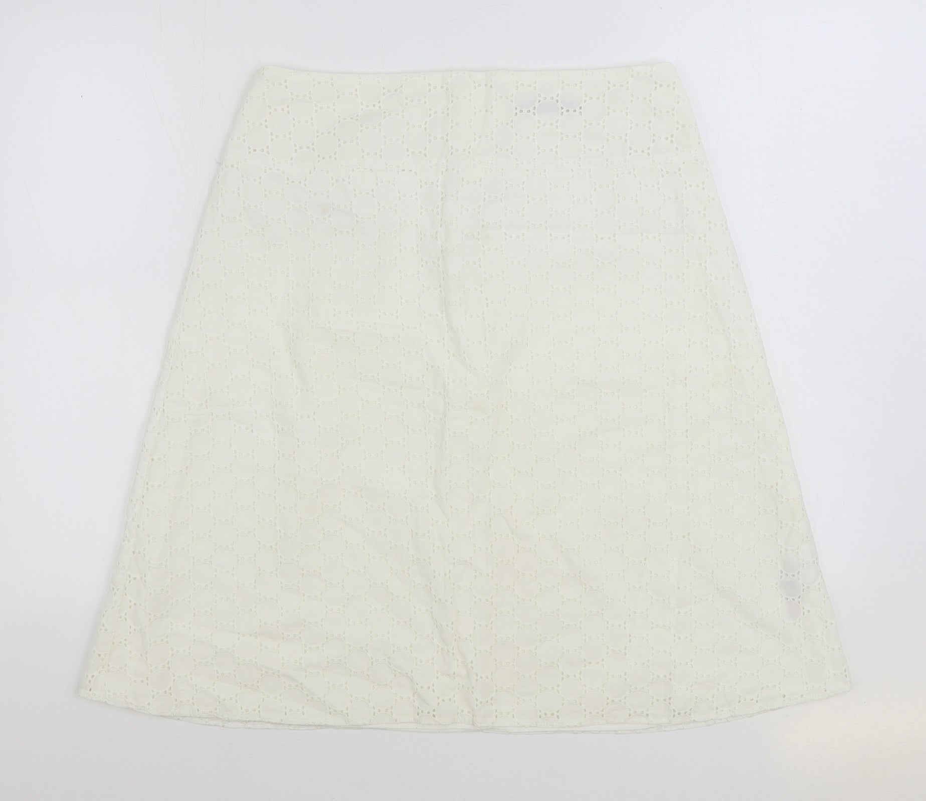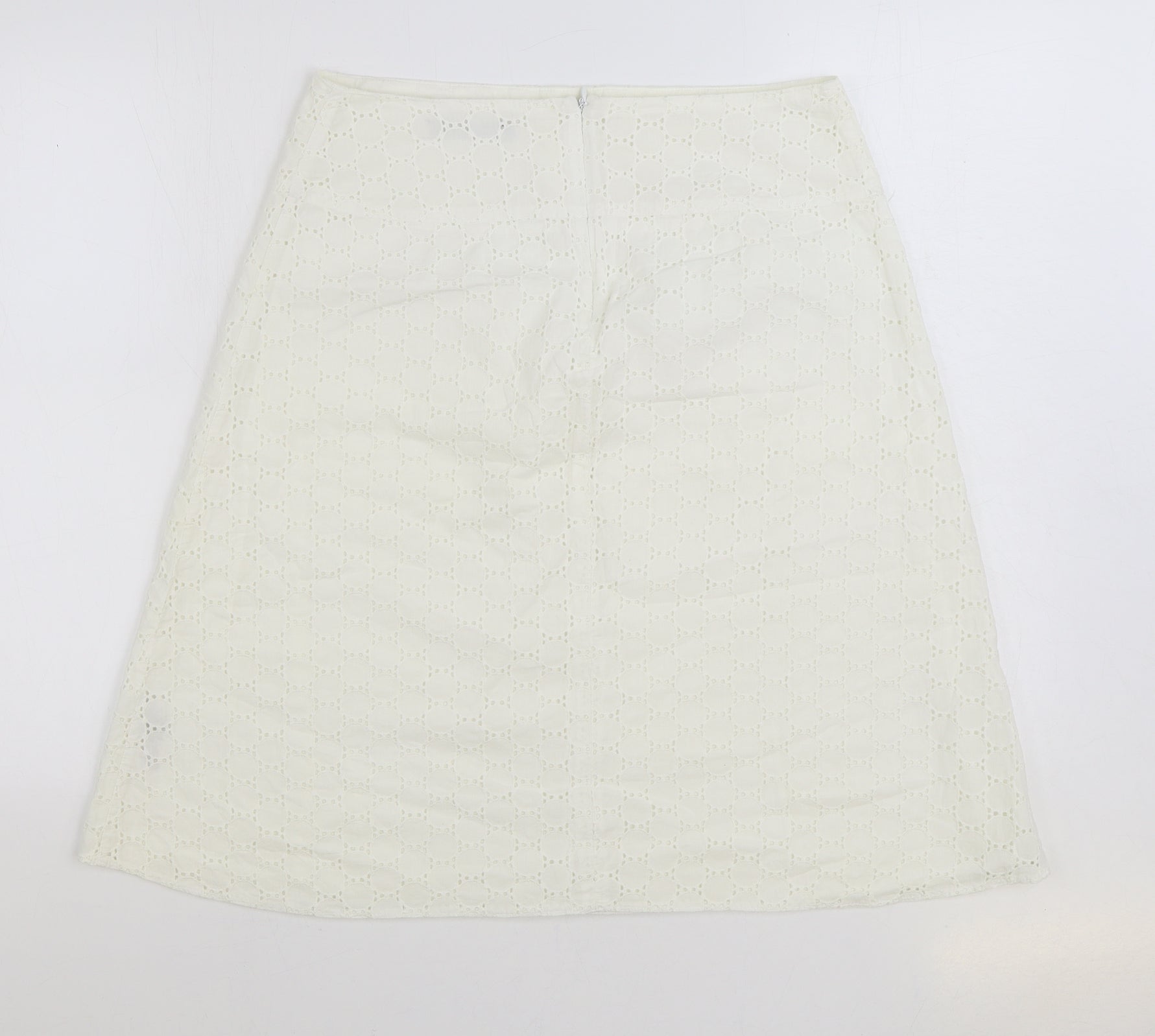 Womens White Cotton A-Line Skirt Size 12 Zip