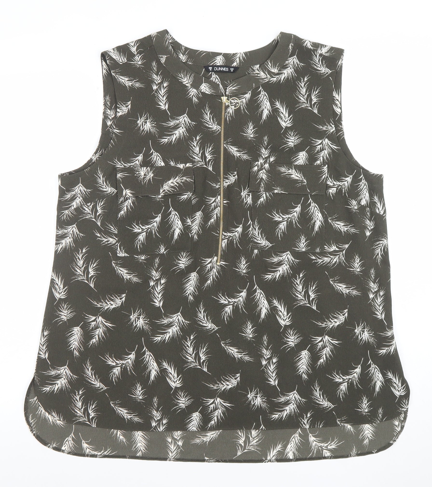 This beautiful women’s sleeveless blouse from Dunnes offers timeless style and comfort for everyday wear. Designed in a versatile black shade with a subtle white feather-inspired floral pattern, it’s the perfect piece for both casual and chic looks. The blouse features a flattering round neckline with a gold-tone front zip accent that adds a modern touch. Its relaxed tunic style provides comfortable movement and an easy fit, making it suitable for warm-weather wear or layering under a cardigan or blazer during cooler days.Made from a soft woven blend of 95% polyester and 5% elastane, this fabric ensures breathability and light stretch for all-day comfort while maintaining its shape. Its lightweight composition makes it ideal for spring and summer seasons, whether paired with jeans for a laid-back look or with tailored trousers for a more polished outfit. The sleeveless cut and fluid drape offer a flattering silhouette that suits all body shapes.This blouse is easy to care for thanks to its machine-washable fabric, allowing convenience without sacrificing sophistication. Its minimalistic pattern and zip detail give it enough flair to stand out without overwhelming your outfit, making it a wardrobe essential that transitions effortlessly from day to evening wear.In excellent pre-owned condition with no visible defects or marks, this top represents high-quality craftsmanship typical of Dunnes designs. Its flexible styling options mean it can adapt to casual outings, travel, or informal workplace settings. Upgrade your wardrobe with this elegant yet easy-to-wear top and enjoy the blend of comfort, versatility, and understated charm that defines reliable fashion staples.