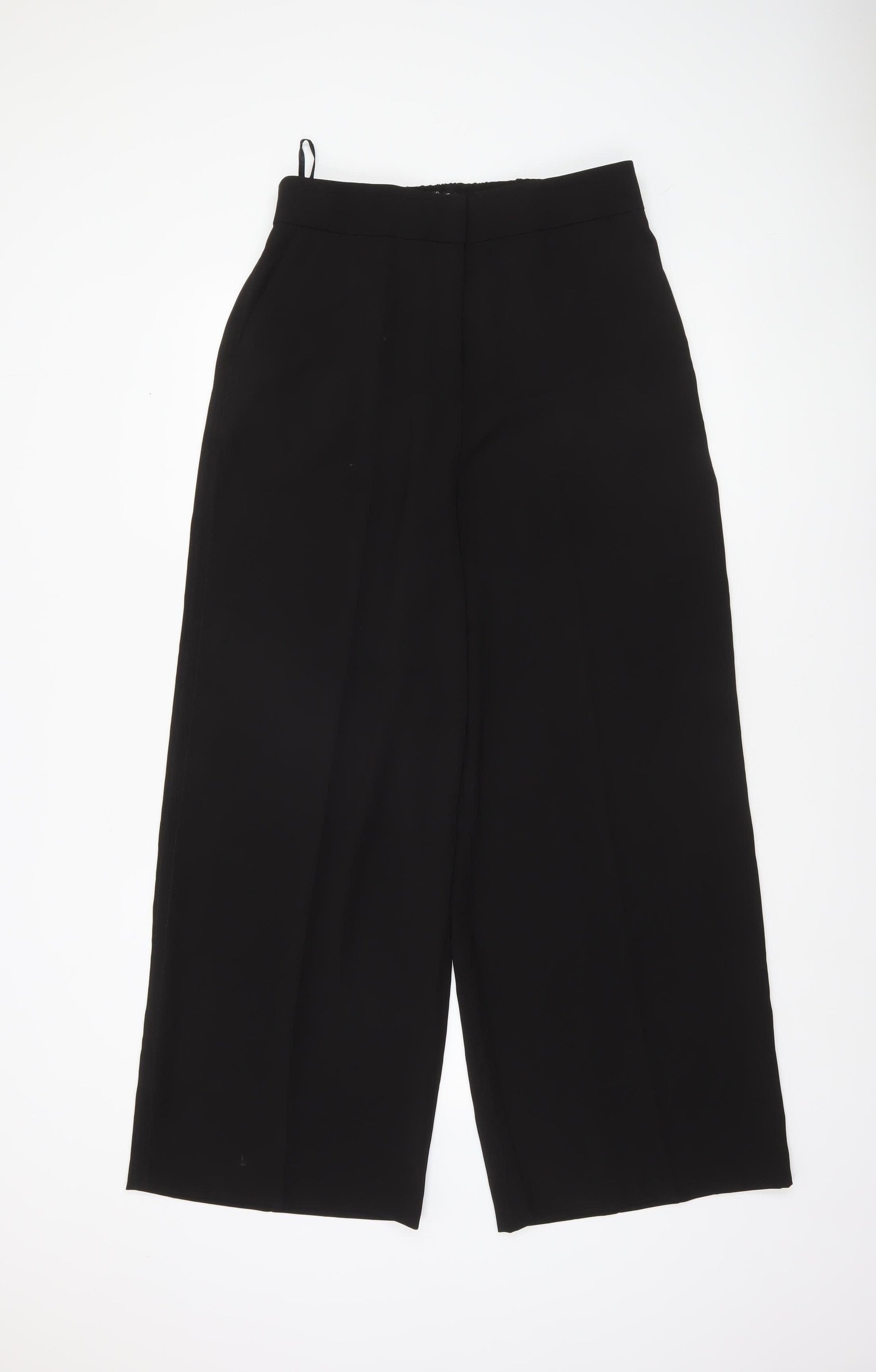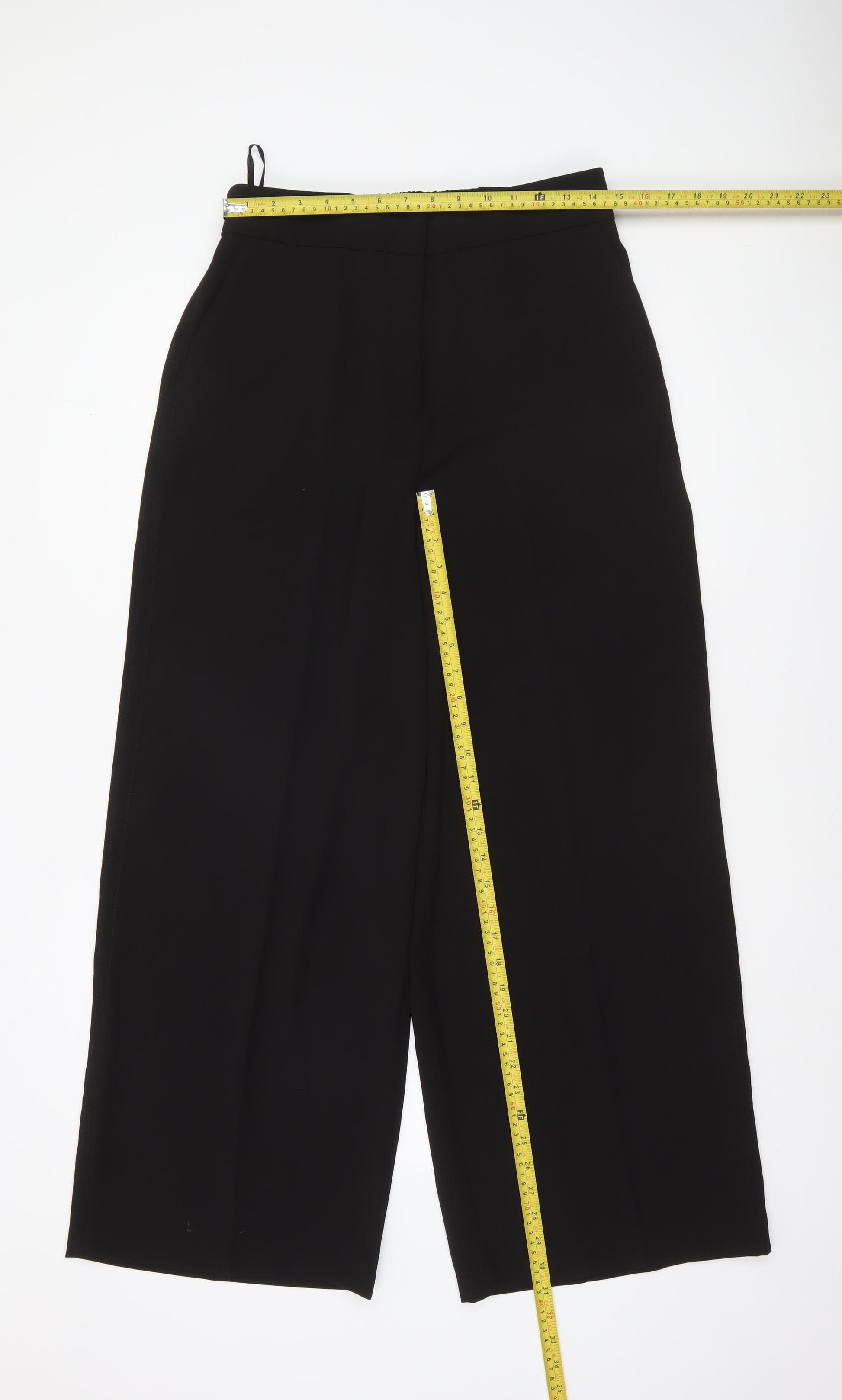 Next Women Black 14R Wide-Leg Cropped Trousers Polyester