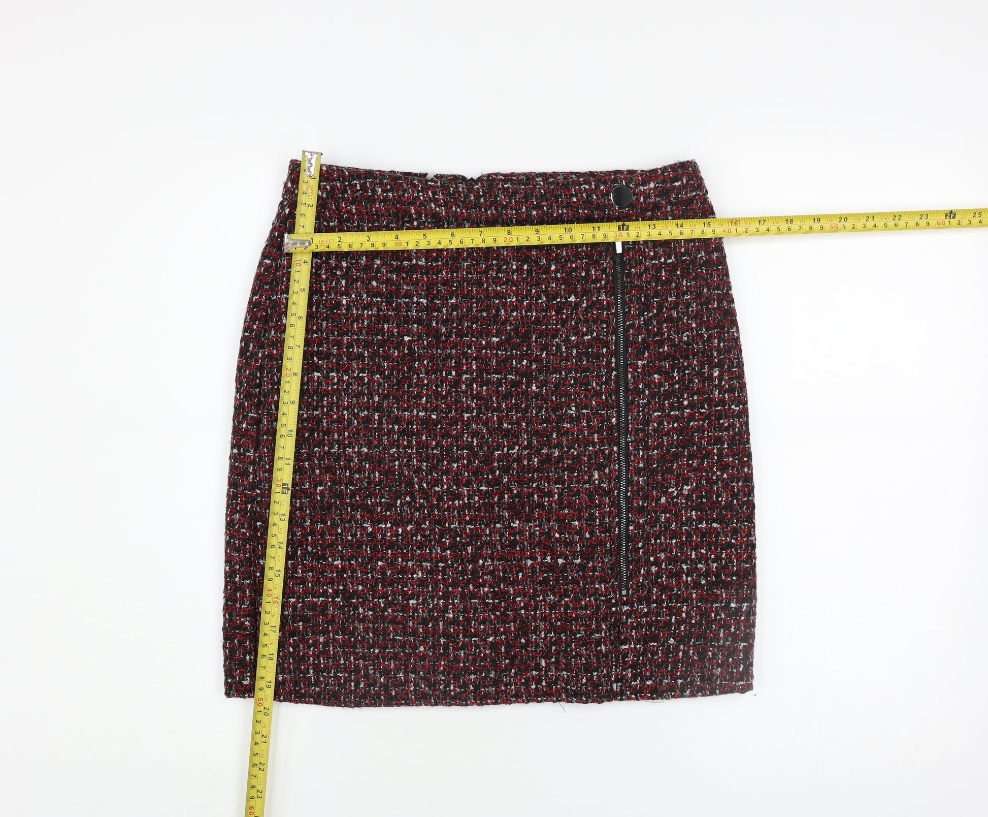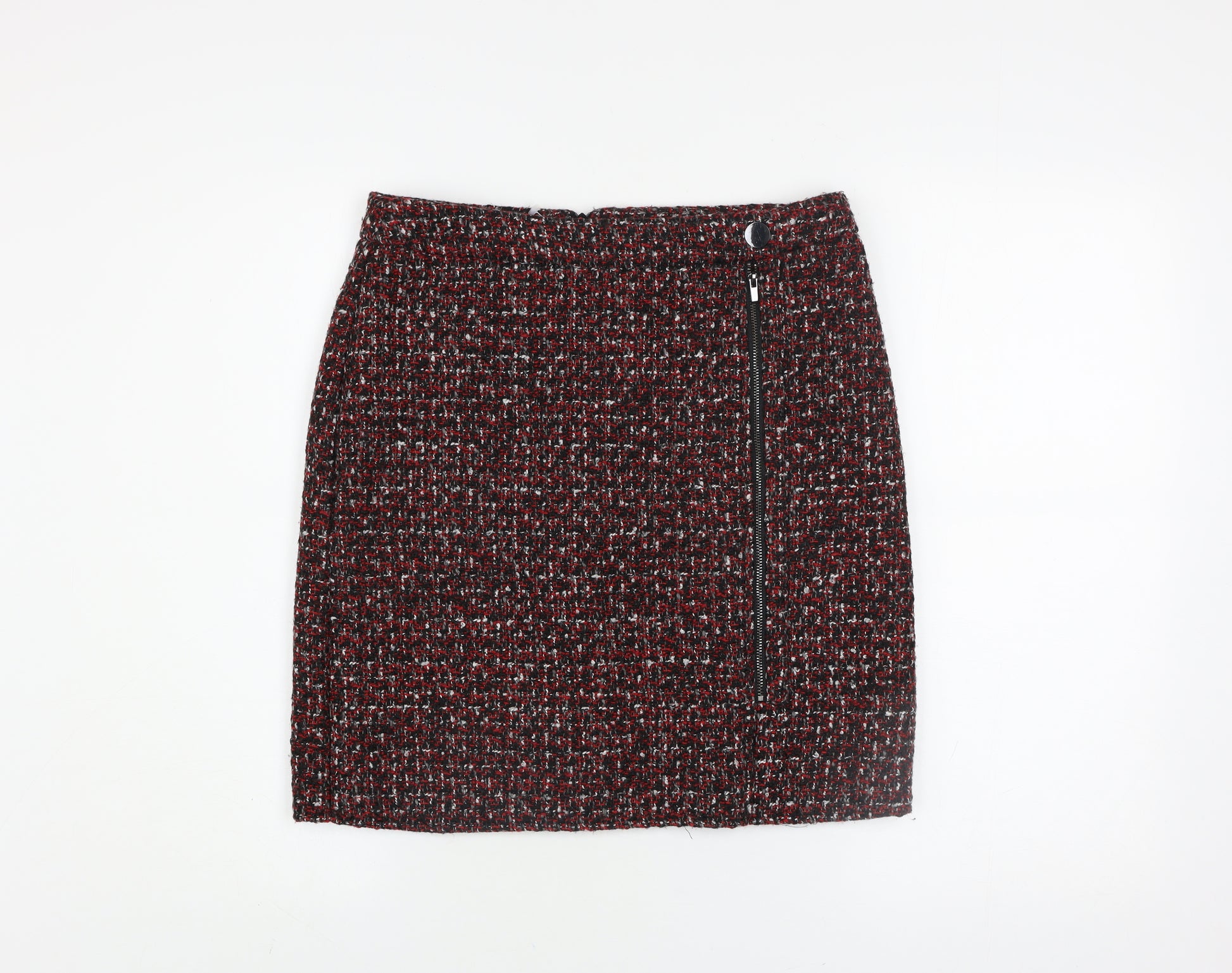Refresh your wardrobe with this chic Dunnes Women’s Tweed Pencil Mini Skirt in a timeless multicoloured weave of red, black, and white tones. Cut in a flattering straight silhouette, this smart skirt blends texture with sophistication, offering a classic look that transitions seamlessly from day to evening. Designed in a high-quality tweed-style fabric made from a soft blend of polyester, acrylic, wool, and viscose for a structured yet comfortable fit, it provides warmth and durability perfect for cooler seasons. The mini length adds a modern twist, while the visible side zip and button fastening give it a stylish edge. Fully lined for premium comfort and crafted for movement, this skirt ensures both style and practicality in one beautifully tailored piece. Ideal for business, casual, or smart-casual occasions, this versatile skirt can be effortlessly styled with blouses, knits, or tailored jackets. Pair it with boots for a refined autumn ensemble or with heels for a polished office look. In excellent pre-owned condition with minimal signs of wear and no flaws, it represents great quality and value. A must-have classic that complements a range of winter and autumn wardrobes, offering a touch of heritage style and modern femininity. Whether you’re updating your workwear staples or looking for a dependable yet fashionable piece, this Dunnes mini skirt delivers outstanding versatility and timeless chic. Treat yourself to this beautifully made skirt and experience elegant texture, perfect tailoring, and understated sophistication that will make it a staple in your wardrobe for seasons to come.