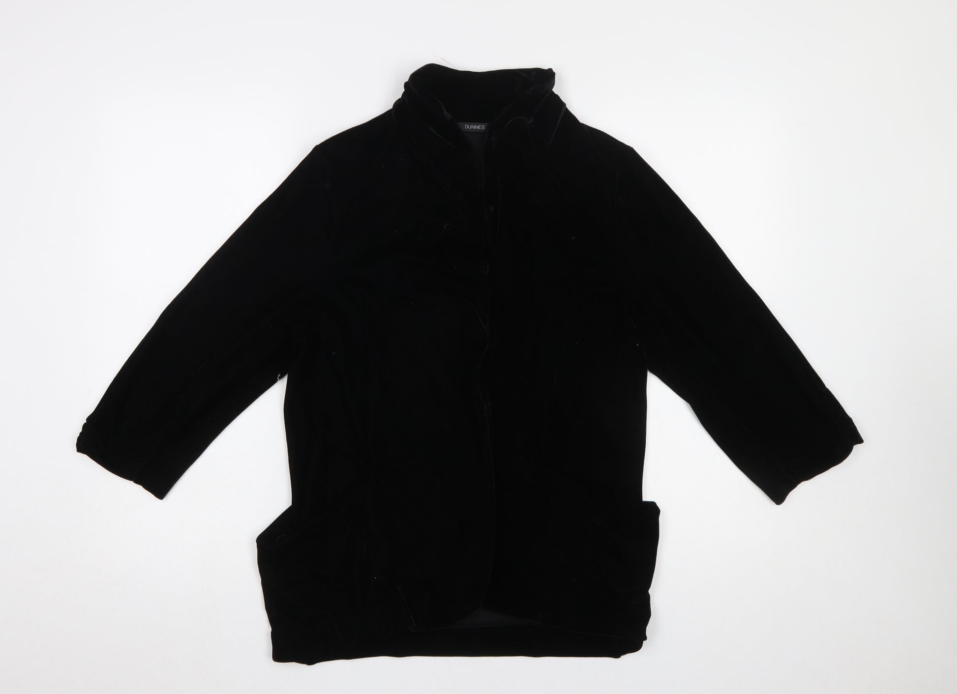 Step out in effortless sophistication with this elegant black velvet jacket by Dunnes. Designed for women who appreciate subtle luxury, this beautifully constructed mid-length jacket combines comfort, style, and versatility. Crafted from soft-touch 100% polyester in a velvet finish, it provides a refined texture and a subtle sheen that catches the light beautifully. The jacket is fully lined for warmth and enhanced durability, making it ideal for cooler seasons such as autumn and winter. Designed in a classic regular fit with long sleeves, it offers a flattering silhouette that complements both everyday and evening outfits. The zip closure ensures ease of wear, while the practical front pockets add everyday functionality without compromising on style. The plain black colourway allows effortless coordination with other wardrobe pieces, whether layered over dresses or paired with tailored trousers. This piece reflects Dunnes' dedication to quality and timeless design, ideal for a casual day out, work commute or relaxed evening occasion. Machine washable for easy care, it remains as practical as it is stylish. Condition is excellent with only minimal signs of wear, ensuring it remains a chic addition to your wardrobe. Make this elegant Dunnes black velvet jacket your go-to layering piece this season — a perfect blend of warmth, comfort, and understated style, all wrapped up in one versatile item that effortlessly elevates any outfit.