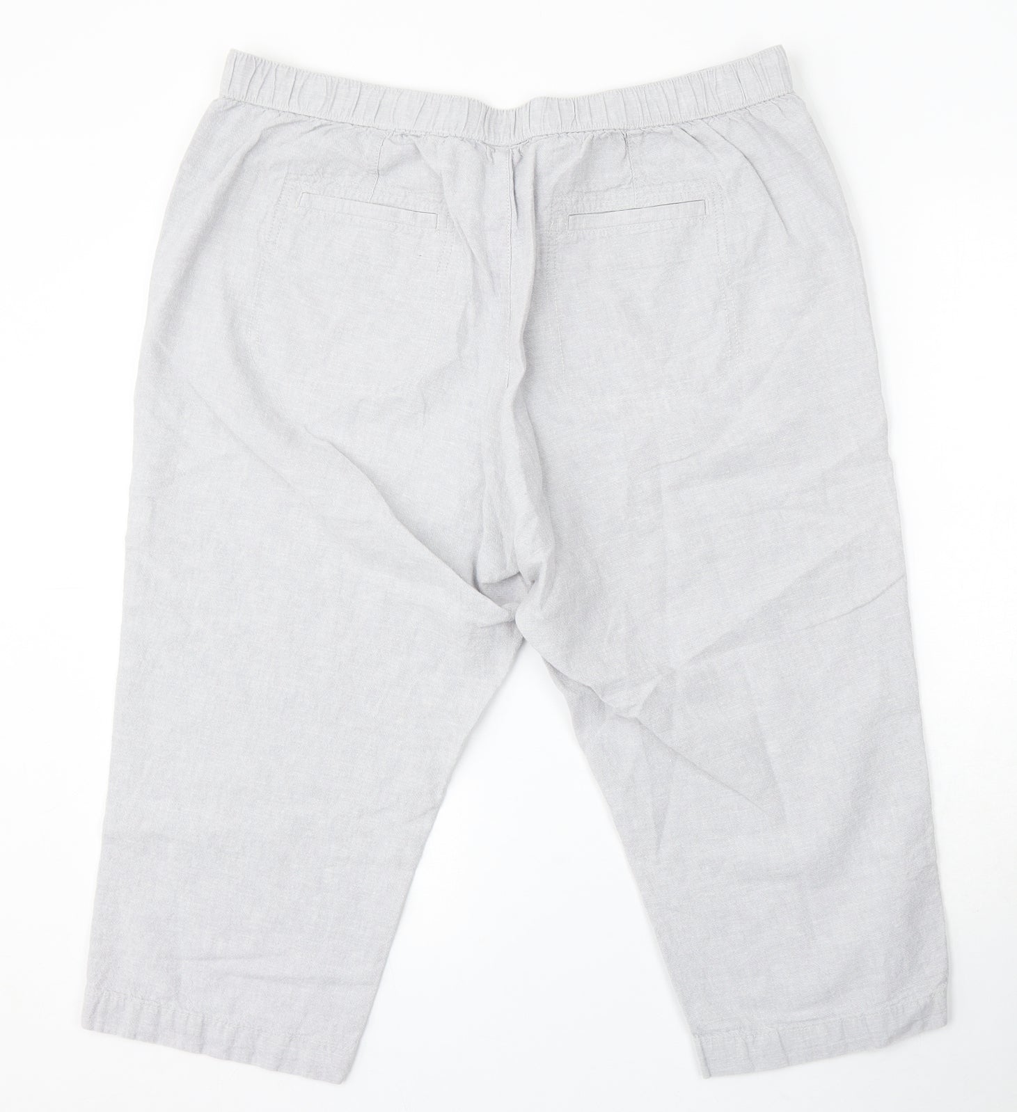 Womens Grey Cotton Capri Trousers Size 16 L22 in Regular Drawstring
