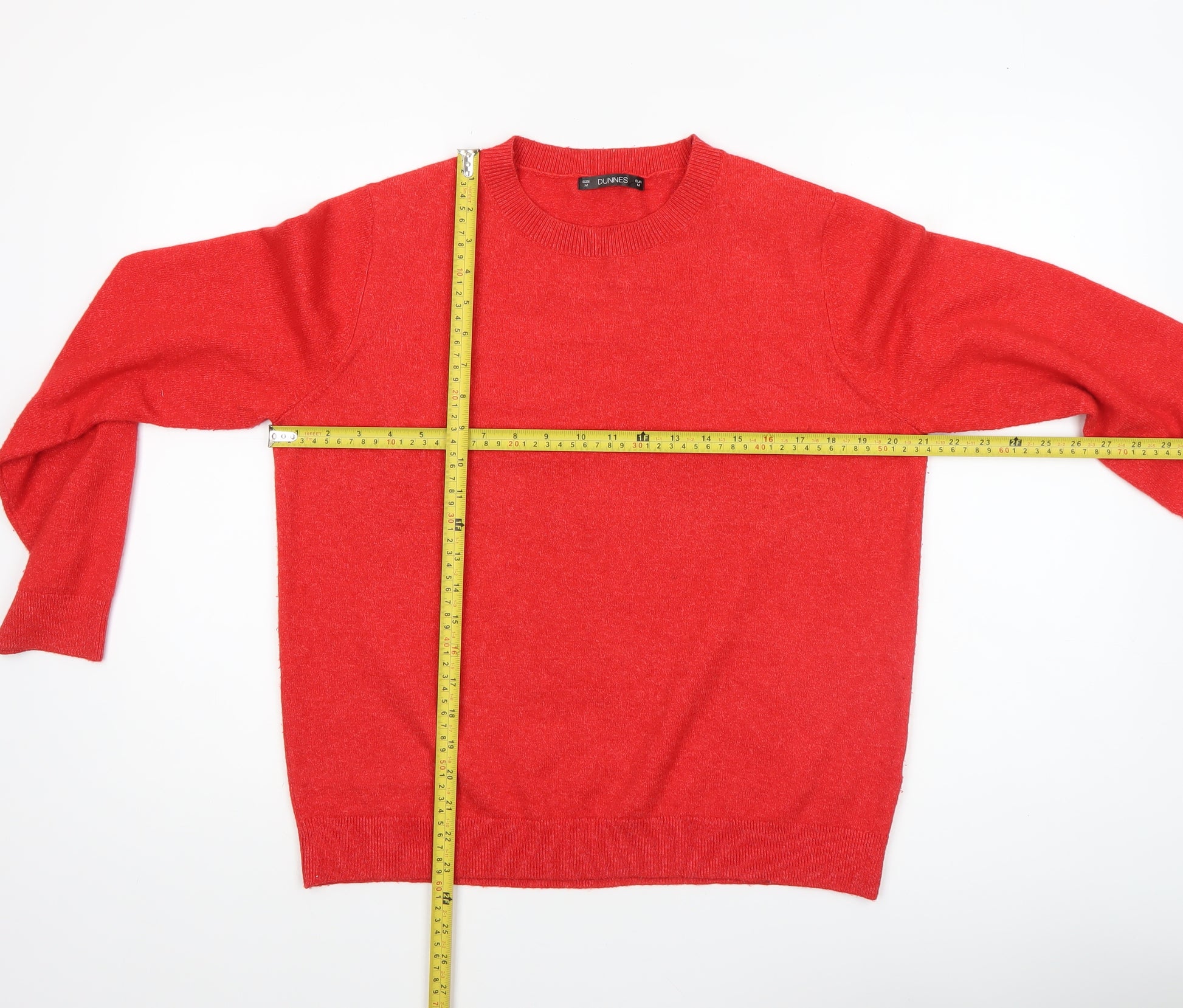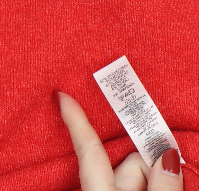 Brighten up your everyday wardrobe with this cosy red pullover jumper from Dunnes, crafted for both comfort and simplicity. Made from a soft and resilient blend of polyester, acrylic, wool, and elastane, this knit provides a lightweight yet warm feel, perfect for cooler days. Its classic crew neckline and long sleeves offer timeless style and versatility, ideal for layering over shirts or under jackets throughout autumn, winter, and early spring. The finely knit texture ensures a flattering, smooth fit while maintaining superb stretch and shape retention. The vibrant red colour adds a bold pop to any look, making it easy to pair with jeans, tailored trousers, or skirts for an effortless outfit. Designed for everyday wear, it’s machine washable and easy to care for, ensuring longevity and convenience. In excellent pre-owned condition with only light general signs of wear, this jumper remains in great shape with no marks or damage visible. Offering reliable quality and classic charm, this Dunnes women's jumper is perfect for casual days, the office, or weekends out. Whether you’re looking to refresh your knitwear rotation or simply add a staple layering piece, this timeless red pullover delivers both warmth and style. Upgrade your wardrobe with this versatile jumper that balances practicality, comfort, and a refined appearance. A simple yet striking option that showcases Dunnes’ commitment to classic, high-quality wardrobe essentials.
