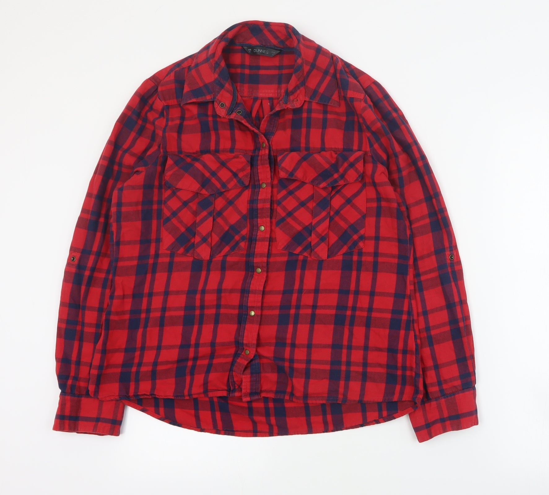 Womens Red Plaid Cotton Basic Button-Up Size 14 Collared