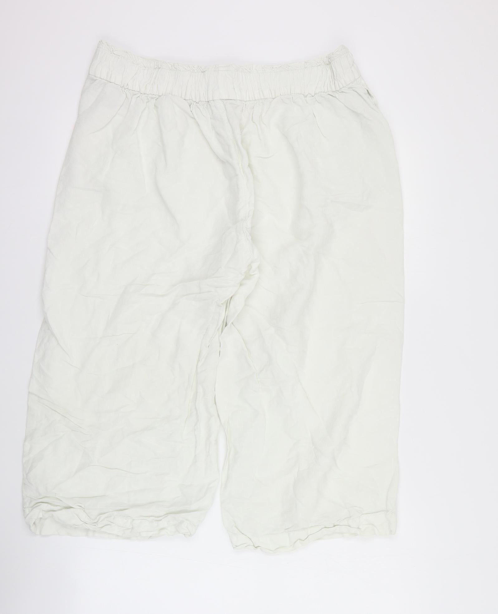 Womens White Linen Cropped Trousers Size 14 L20 in Regular