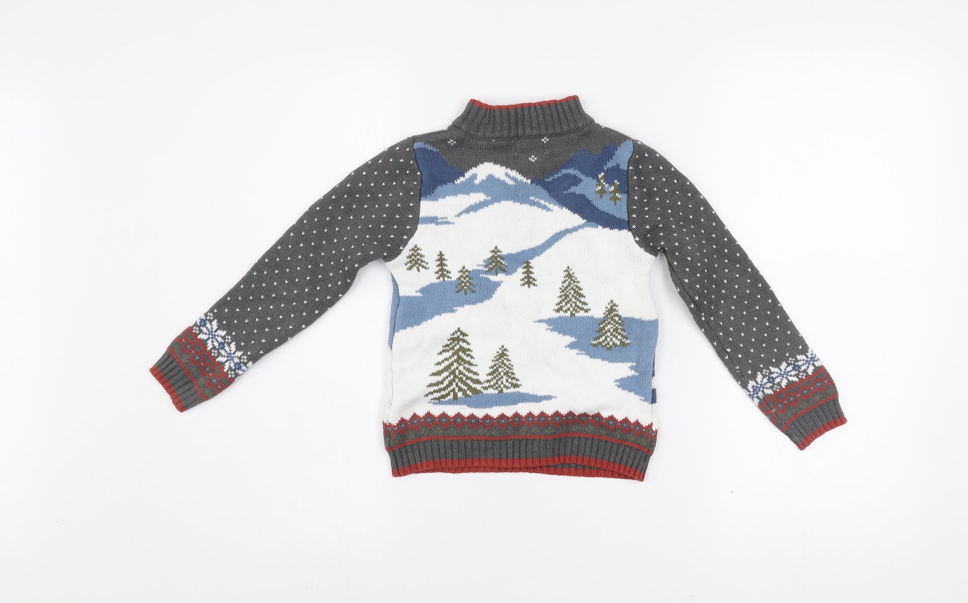 Boys Grey Ski Scene 1/4 Zip Jumper 2 Years Cotton Acrylic Winter Knit