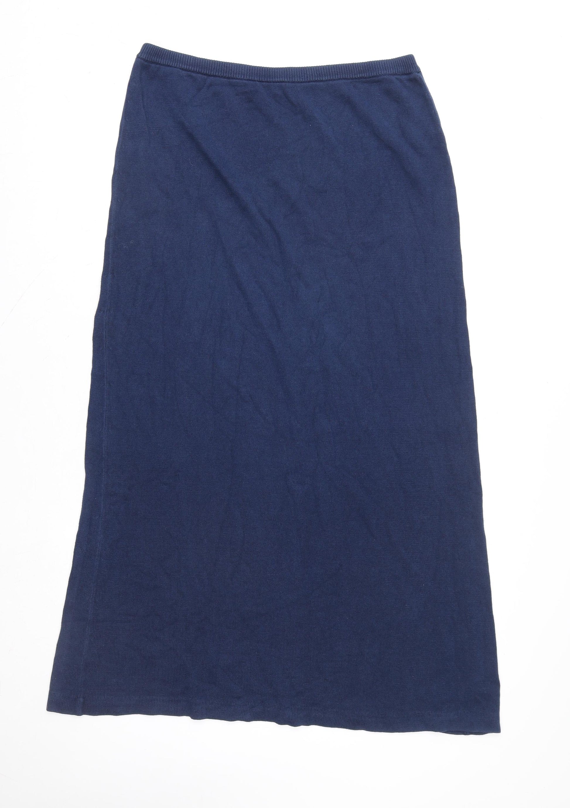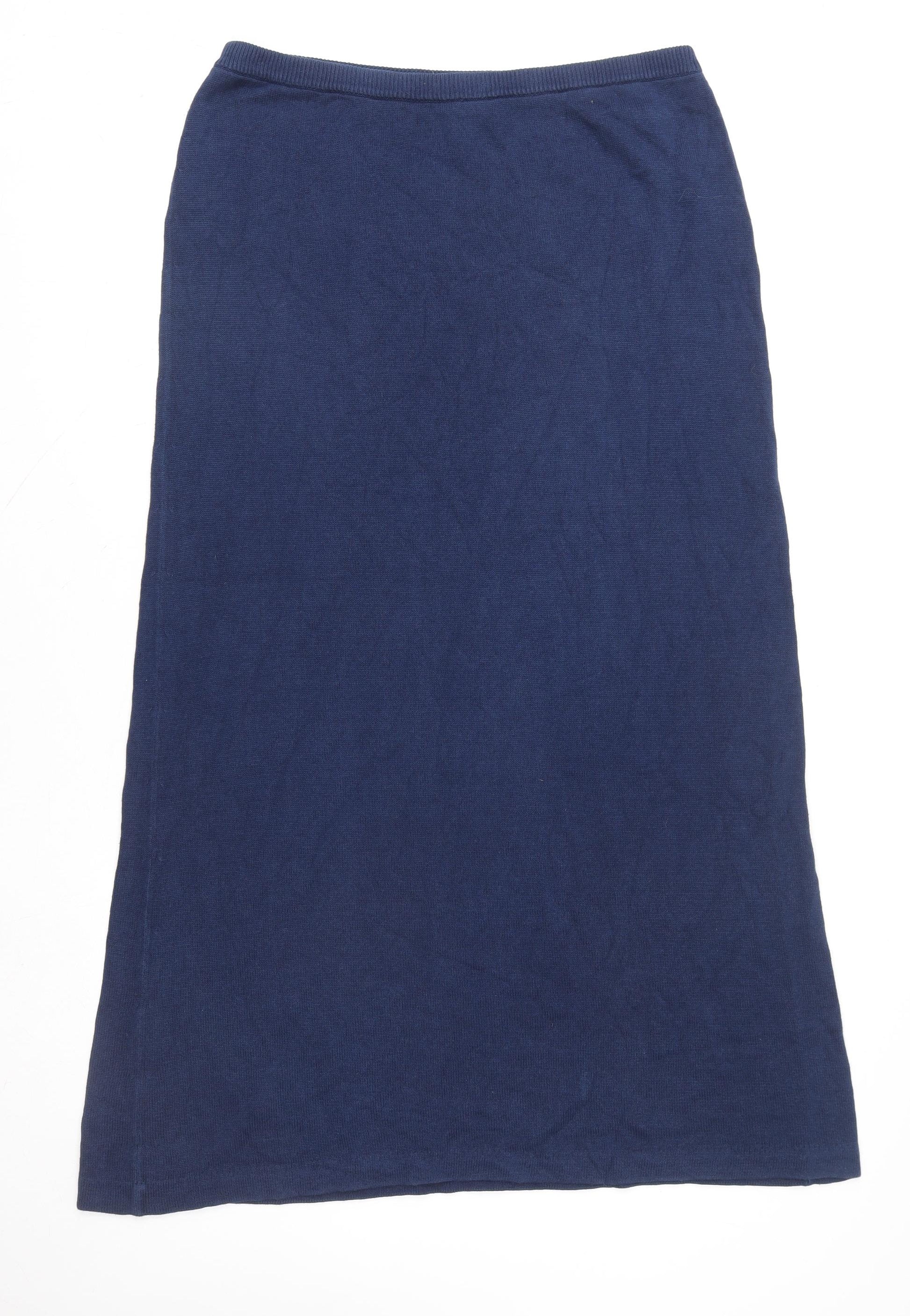 This stylish women’s A-line skirt from EAST is a timeless wardrobe staple, perfect for versatile everyday wear. Crafted in a soft and breathable 100% cotton knit fabric, the skirt delivers comfort and effortless elegance. The rich navy blue colour complements a wide range of styles, making it ideal for both casual days out and smart-casual occasions. Designed in a flattering midi length with an elasticated waist, it ensures a smooth silhouette and easy fit for all-day wear. The simple, minimalist design makes it perfect to pair with blouses, jumpers, or tees for any season. Its lightweight construction offers ease and movement, ideal for spring through autumn. The fine knit texture adds subtle sophistication, while the A-line shape provides a relaxed yet refined outline that suits various body shapes beautifully. This EAST skirt shows only minimal signs of previous wear and remains in excellent condition with no visible defects. Whether styled for the office, travel, or weekend outings, this piece blends comfort and classic refinement effortlessly. Perfect for women who appreciate understated quality and sustainable, long-lasting fashion. Enhance your collection with this chic, easy-care skirt that washes beautifully and stays looking fresh season after season. Pair it with a printed top and flats for a casual day look or elevate it with a silk blouse and heels for a refined ensemble. This thoughtfully designed piece by EAST offers timeless appeal and enduring comfort, making it a great addition to any discerning wardrobe. A versatile midi skirt that effortlessly bridges the gap between style and functionality, it promises repeat wear year after year. Treat yourself to a premium cotton essential that never goes out of fashion with this lovely navy A-line skirt by EAST.