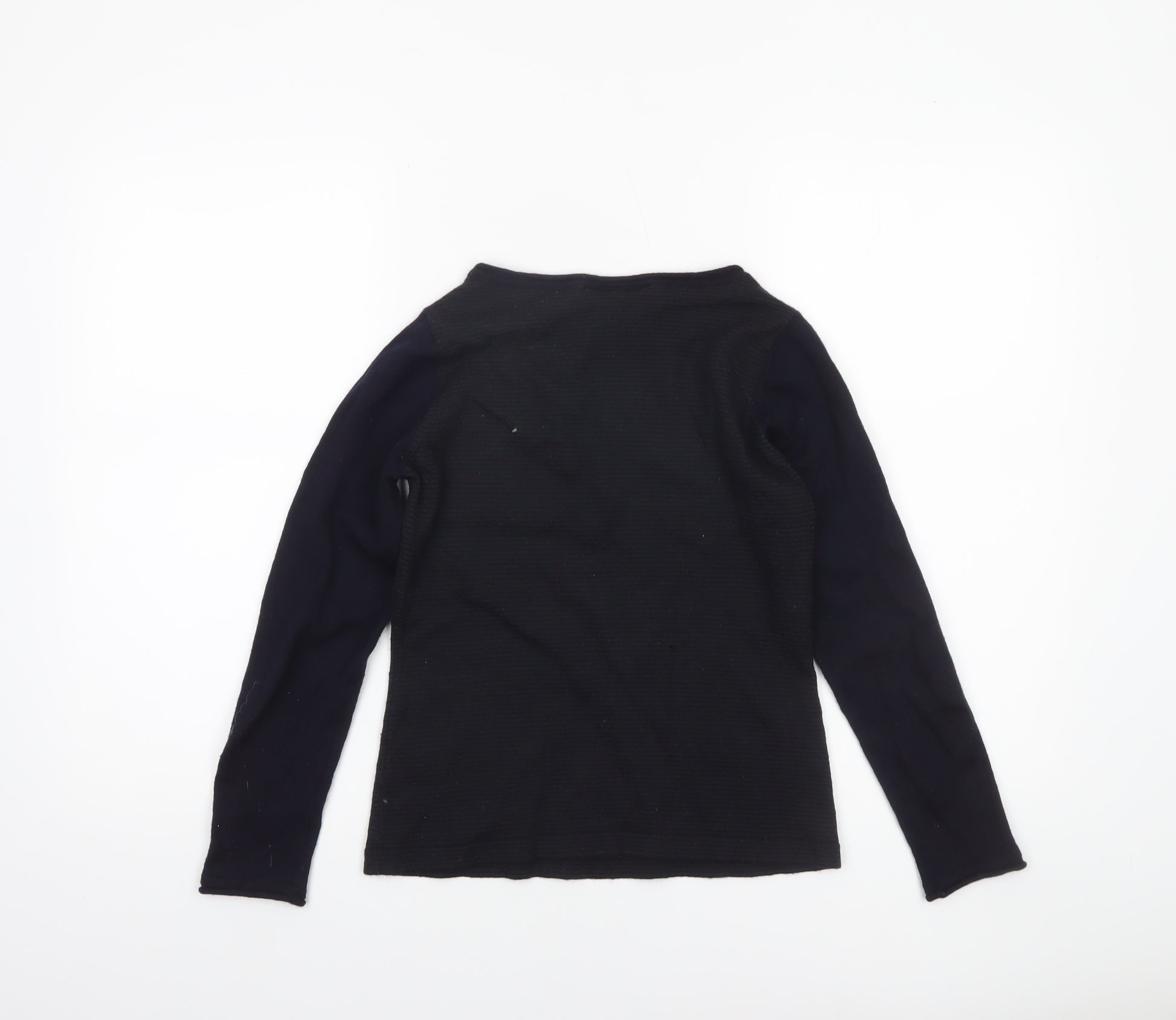 Womens Black Wool Blend Crew Neck Long Sleeve Jumper Size 12