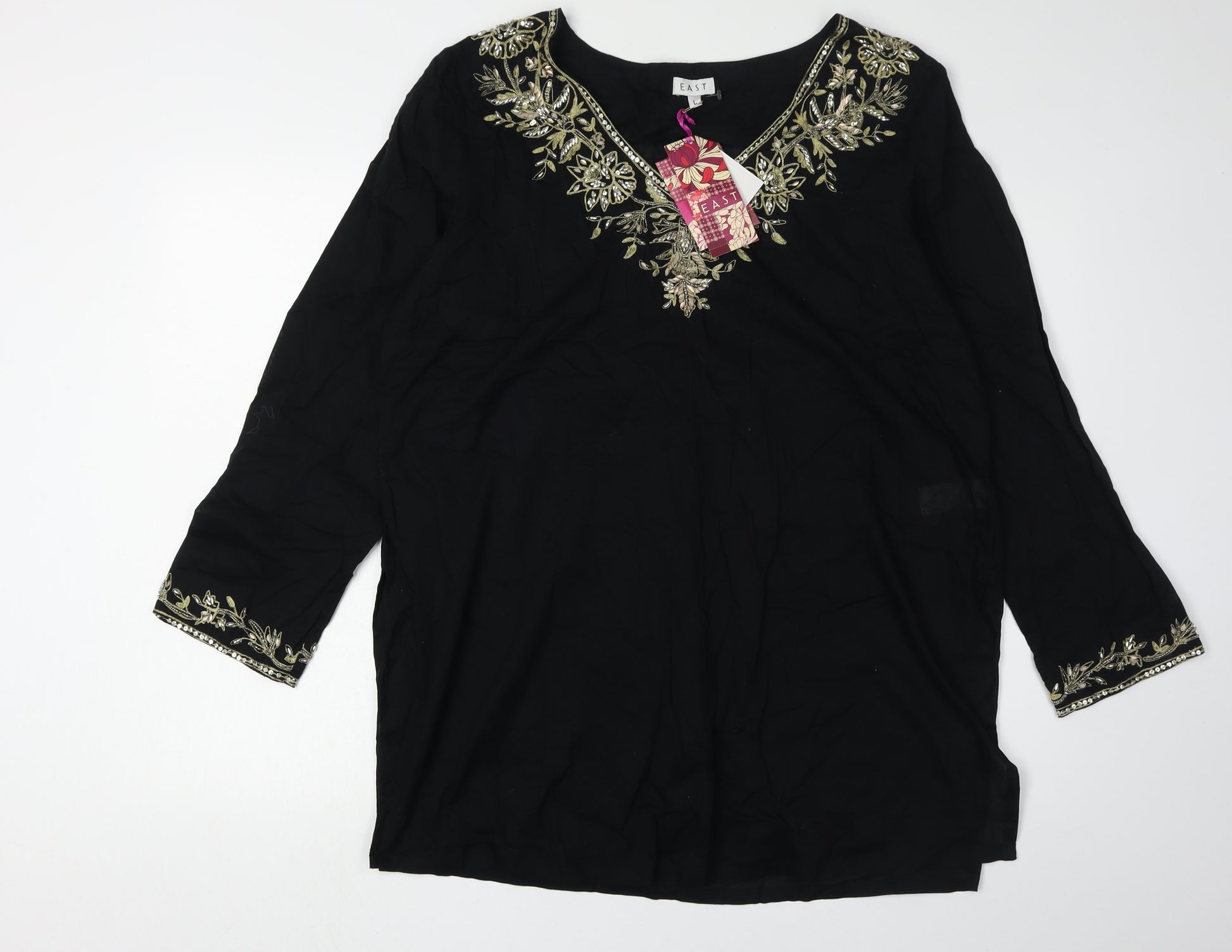 East Women's Embroidered Black 3/4 Sleeve Blouse L
