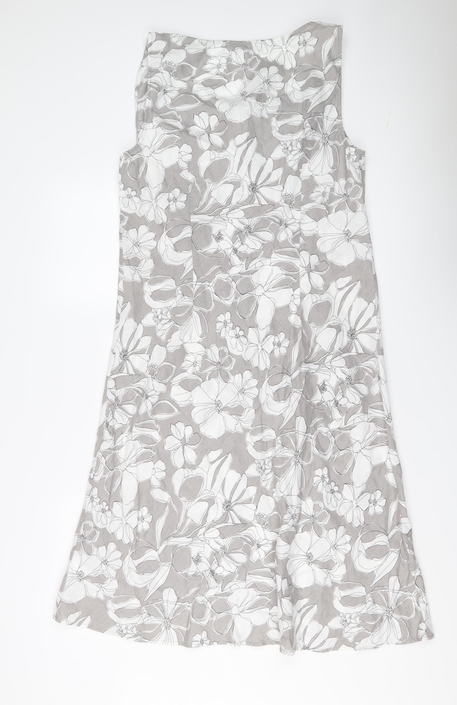 Womens Grey Floral Linen A-Line Size 18 Round Neck Pullover
