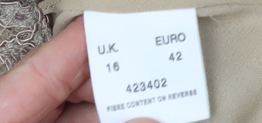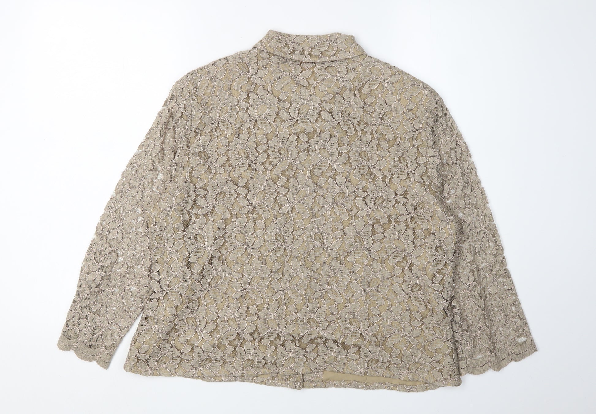 Beige Lace Blouse Women Size 16 Collared Floral Elegance