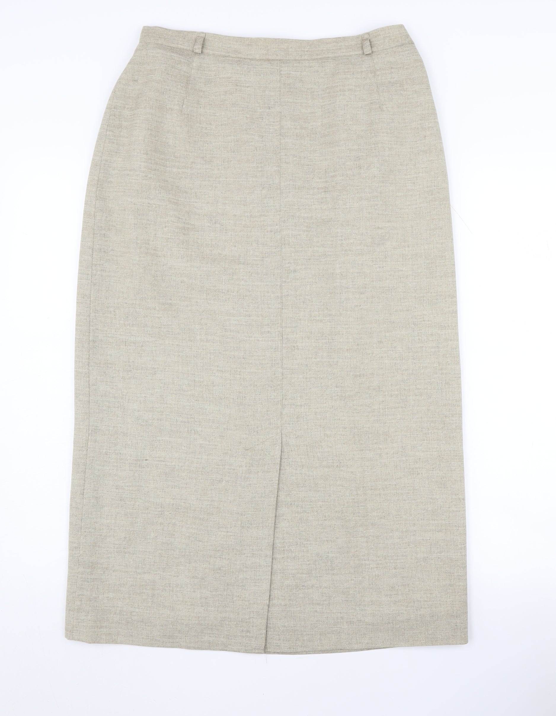 Elevate your workwear wardrobe with this elegant beige pencil skirt from Eastex. Crafted for a sophisticated look, this skirt is designed in a flattering midi length that pairs perfectly with a variety of tops and footwear. The neutral beige color makes it a versatile piece, ideal for mixing and matching to create numerous stylish outfits.Made from high-quality polyester, this skirt is both durable and easy to care for, being machine washable. The skirt features a classic straight and pencil silhouette that complements the figure beautifully, while the elastic waistband ensures a comfortable fit throughout the day. Ideal for spring and summer seasons, it allows you to stay cool and comfortable during warmer months.This skirt is perfect for the office environment or any formal occasion. The simple yet refined design allows for accessorizing, so you can infuse your personal style into every outfit. The skirt's button closure adds an additional element of practicality and elegance.Whether you're preparing for a busy day at work or a formal gathering, this Eastex skirt is an impeccable choice for anyone seeking timeless fashion and reliable comfort. Its excellent condition ensures you are getting a quality garment that looks as good as new. Don't miss the opportunity to add this versatile and chic piece to your fashion repertoire.