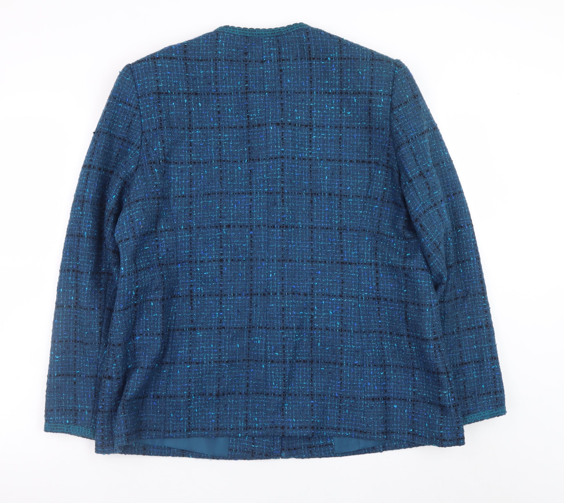 Women Blue Tweed Wool Blend Button Jacket Size 16