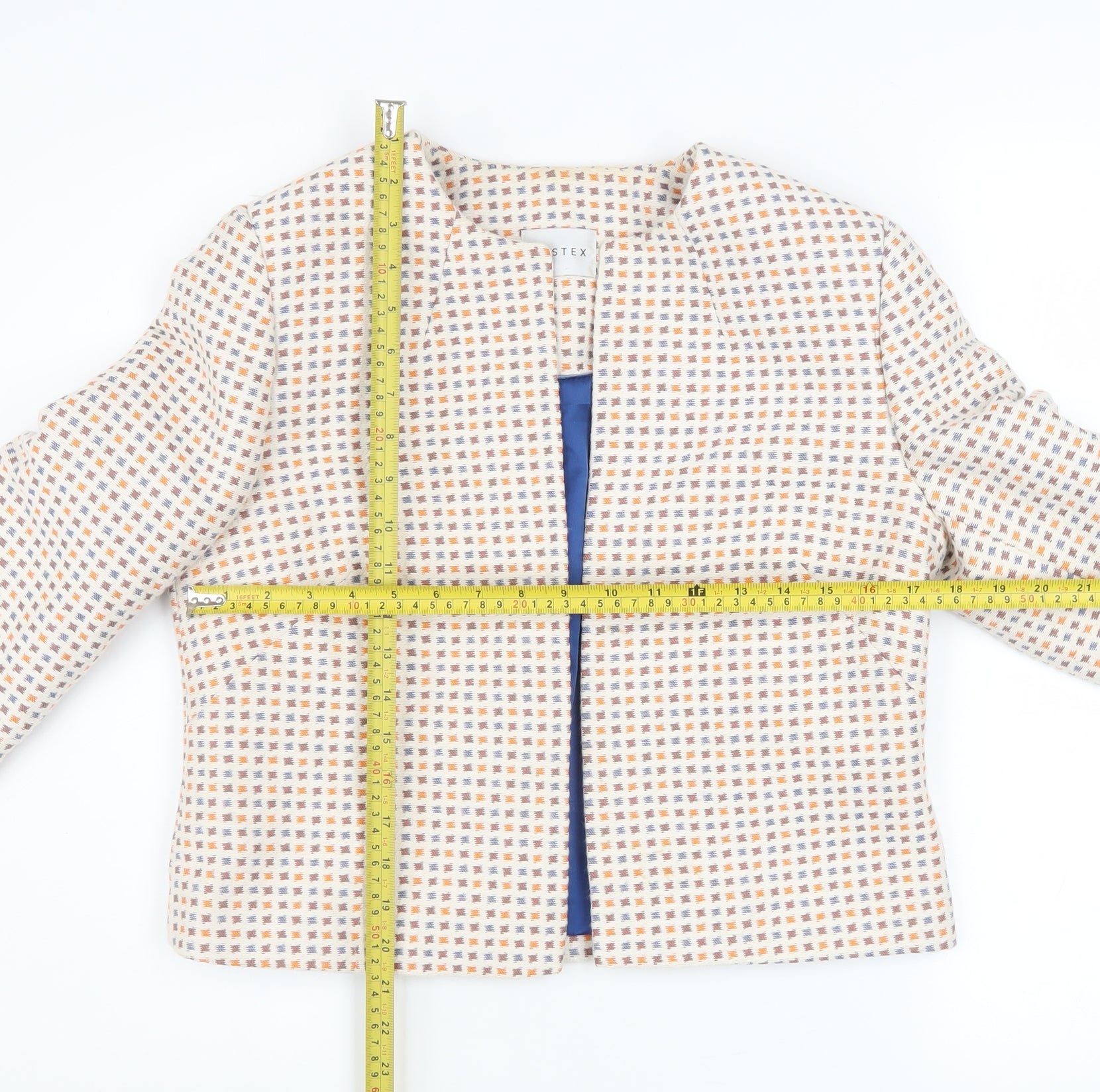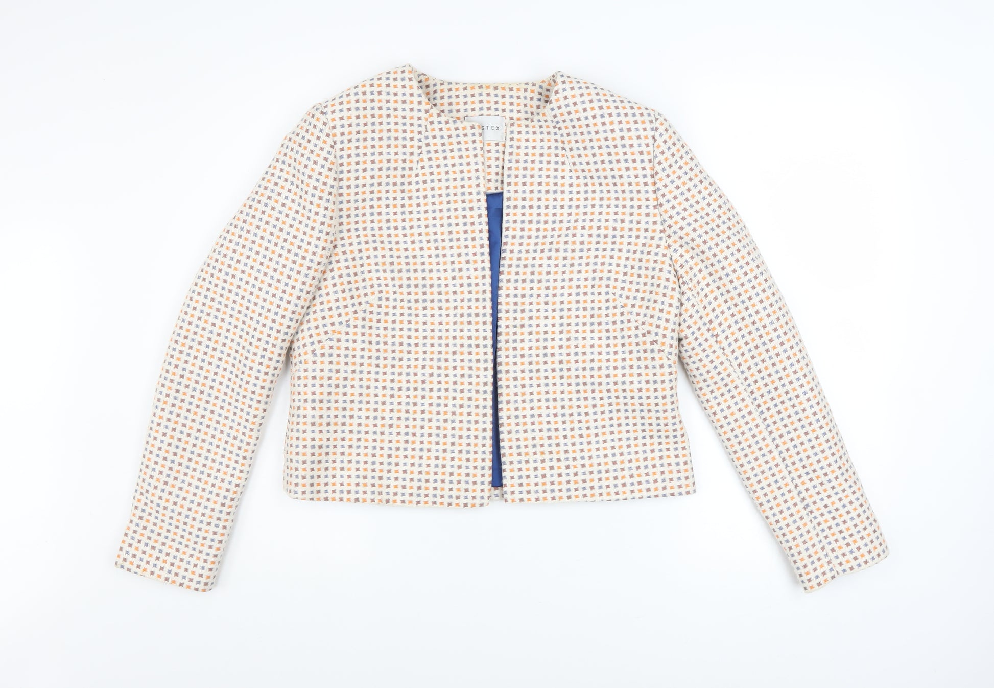 Step out in refined style with this elegant Eastex women’s jacket, perfect for adding a polished layer to your spring and summer wardrobe. Crafted from a soft and breathable cotton blend fabric, this jacket ensures a comfortable feel while maintaining structure and shape. The intricately woven multicoloured tweed texture, combining tones of cream, orange, and blue, creates a timeless and classic appearance that complements both smart and casual ensembles. Designed with an open front, the jacket offers easy layering over blouses, dresses or tops, adding an effortlessly chic touch to your outfit. The fully lined interior in smooth polyester enhances comfort and wearability. With its short, tailored cut, it offers a flattering silhouette suitable for a variety of body shapes. Ideal for daytime wear, casual lunches or office environments, this piece reflects the signature quality and sophistication Eastex is known for. The jacket is finished to excellent used condition with no visible flaws, maintaining its original texture and colour vibrancy. Pair it with tailored trousers for a professional look or with jeans for a relaxed yet elevated weekend style. Elegant, versatile and effortlessly stylish, this Eastex short tweed jacket is a wardrobe essential that blends classic British tailoring with wearable modern charm. A lightweight jacket that transitions seamlessly between seasons, it embodies understated sophistication and practicality for the contemporary woman seeking refined comfort and everyday elegance.
