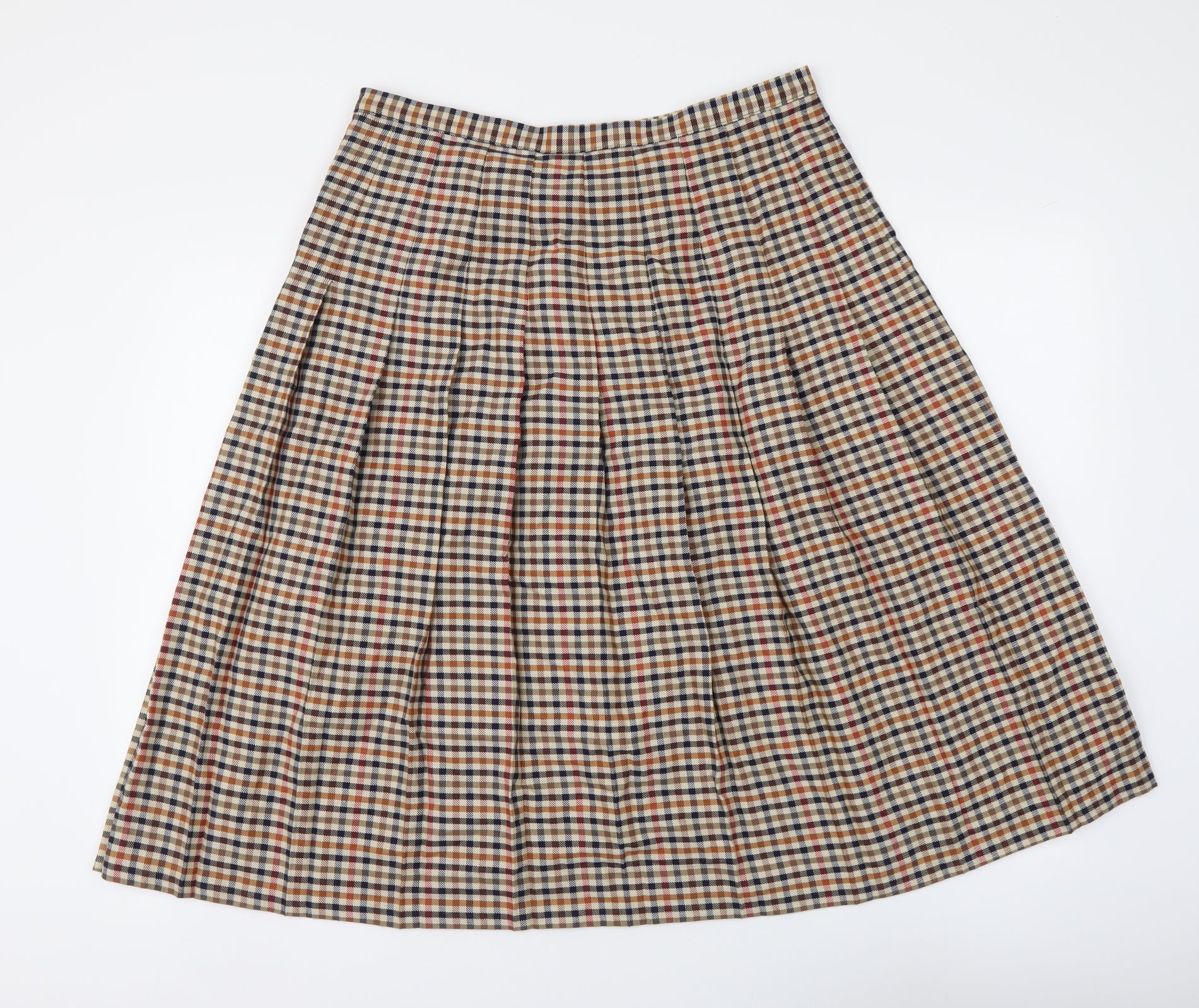 Womens Beige Check Polyester Pleated Skirt Size 18 Zip