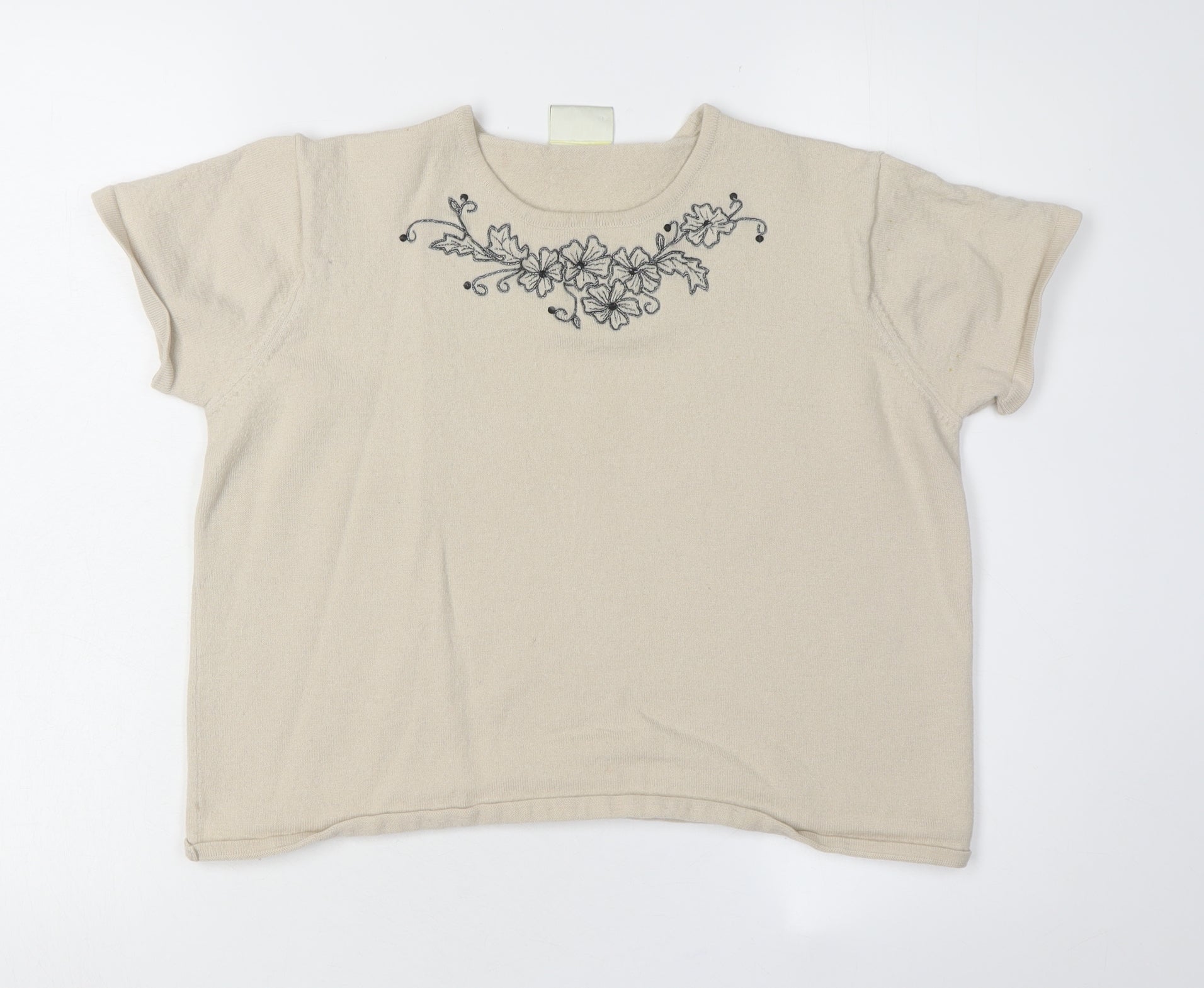 Discover the elegance of this Eastex Women's Beige Embroidered Short Sleeve Top, an ideal addition to any wardrobe. Crafted with a refined blend of 50% wool and 50% acrylic, this top promises comfort and style in equal measure. The classic beige hue elegantly complements the intricate embroidered floral design, adding a touch of sophistication to its overall aesthetic. Perfect for those looking for a versatile piece that effortlessly transitions from casual to more formal occasions. This top boasts a flattering regular size 20 fit and is tailored with short sleeves, making it an excellent choice for spring and summer wear. While retaining its chic appeal, it stands out with its understated charm and is especially suited for those seeking comfort and style in their fashion choices. Please note that this top requires hand washing to maintain its quality and durability. Expertly designed for the modern woman, it offers a polished look that is both timeless and contemporary. Whether paired with trousers for a business casual look or a skirt for an evening out, this Eastex top is sure to become a favourite in your collection. Available in excellent condition, this piece exhibits no visible damage or stains, ensuring you receive a garment that feels as fresh as new.