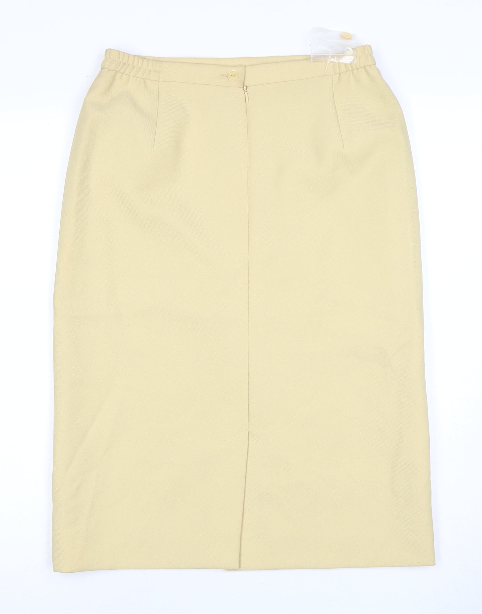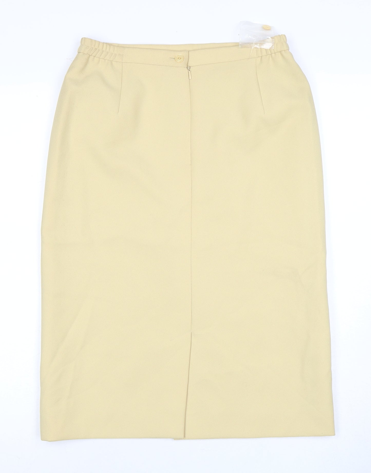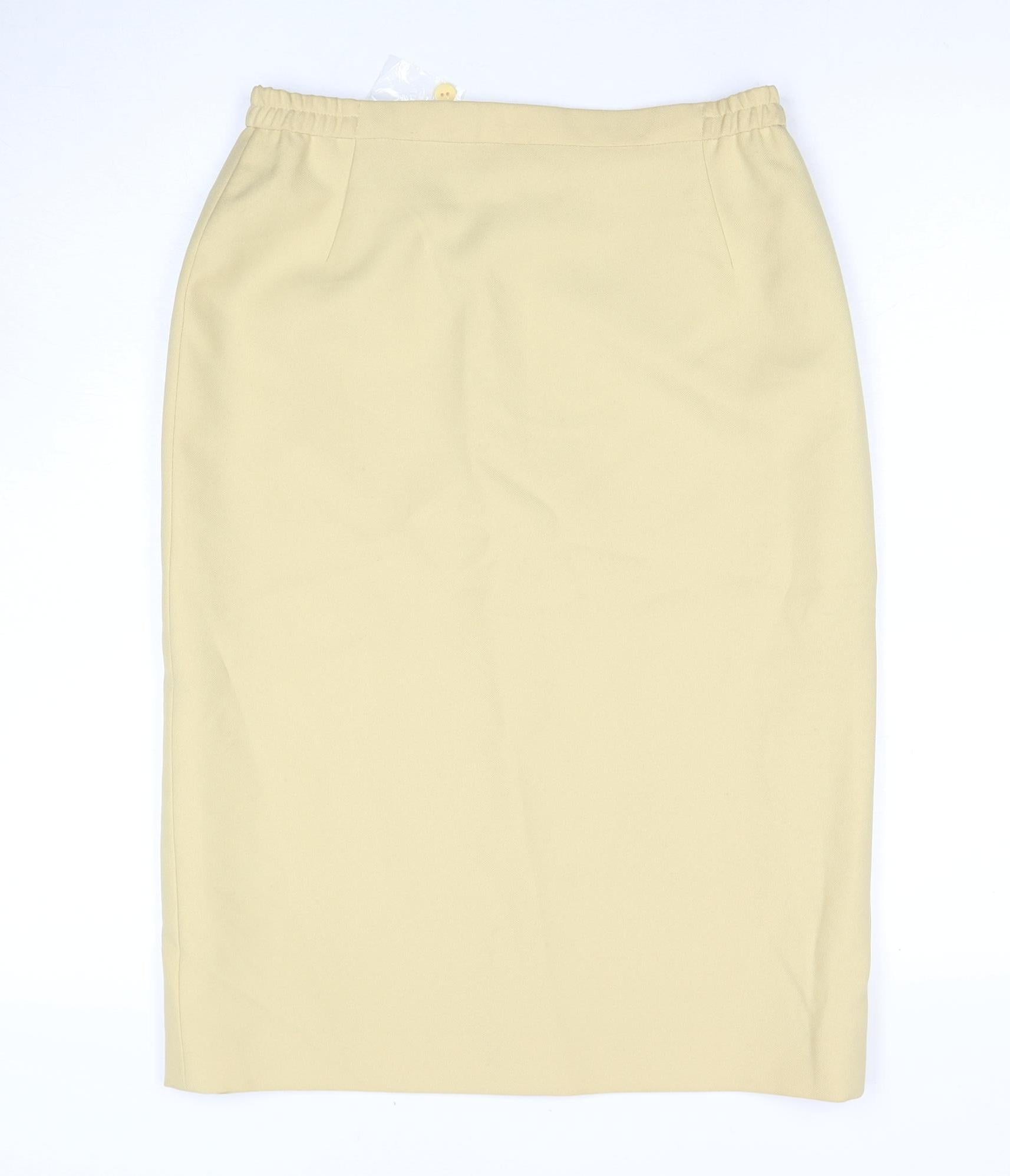 Elevate your wardrobe with this timeless Eastex women's pencil skirt in classic beige, perfect for versatile and effortless styling. Designed for the modern woman, this skirt complements a range of occasions, from casual outings to professional settings. The mid-rise cut and elastic waist ensure comfort and ease of wear, while the button and zip closure add a touch of classic elegance. Crafted from 100% polyester, this skirt is not only durable but also machine washable for hassle-free care. The minimalist design features a sleek straight and pencil style that flatters your silhouette, making it a must-have staple piece in your collection. With its subtle button accent, it adds understated sophistication to any outfit. Whether pairing with a blouse for the office or a casual tee on the weekends, this skirt offers endless styling possibilities. Ideal for those who appreciate simplicity and style, it's a valuable addition to any wardrobe. In excellent condition with no visible defects, you can trust in its quality and elegance. Grab this Eastex beige skirt today and enjoy the chic versatility it brings to your attire.