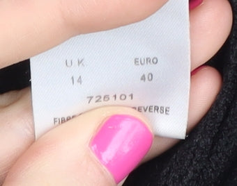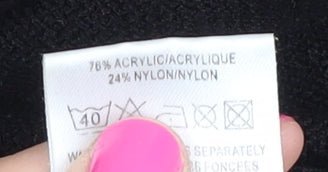 Elevate your wardrobe with this elegant black cardigan from Eastex, designed for the modern woman seeking both comfort and style. This versatile piece, perfect for casual occasions throughout the year, features a regular fit that flatters your silhouette while allowing for ease of movement. Made from a blend of 76% acrylic and 24% nylon, the cardigan offers a soft knit texture that remains lightweight yet warm, ideal for layering during cooler seasons. The cardigan's open-knit style and classic V-neck collar add a touch of sophistication, making it suitable for pairing with various outfits, from a simple blouse and denim for a relaxed look to a chic dress for a smarter ensemble. With long sleeves and a machine-washable construction, this garment promises both durability and convenience. Although gently used in excellent condition, it maintains its original finish, with no visible signs of wear, ensuring you can add it to your collection as if it were new.Whether dressing up for a day at the office or a casual outing, this black Eastex cardigan is a wardrobe staple that combines style, versatility, and comfort. Don’t miss the chance to own a piece that is both timeless and practical. Add this to your collection today and enjoy the perfect blend of function and fashion.