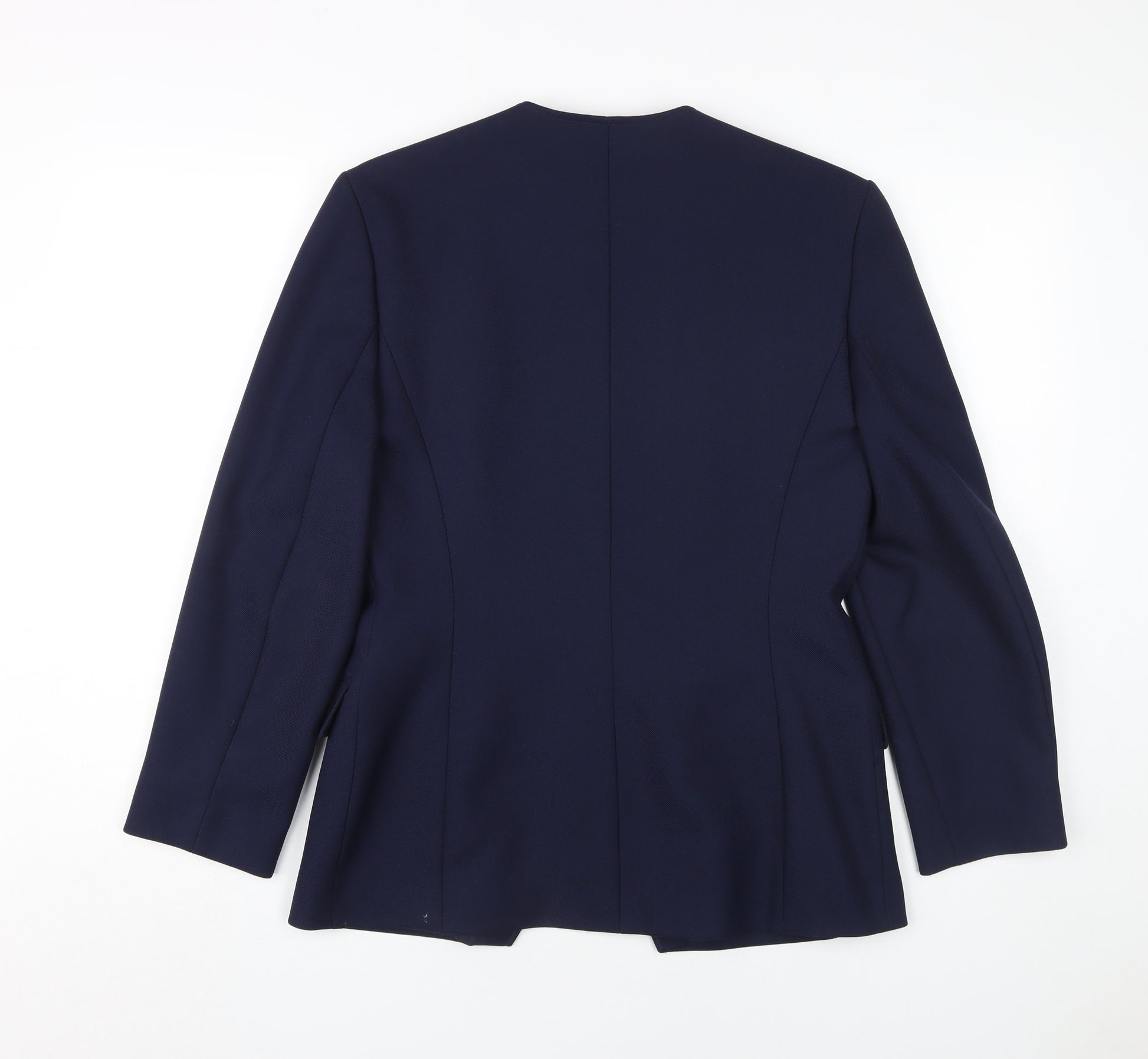 Elevate your wardrobe with this classic blue blazer from Eastex, designed specifically for women seeking versatile style. Crafted entirely from polyester, this blazer offers a refined twill fabric feel, ensuring durability and comfort across all seasons. Featuring a lined interior, long sleeves, and a sleek button closure, this mid-length blazer is perfect for business settings, formal occasions, and casual outings alike. Its classic design and deep blue hue make it suitable for autumn, spring, summer, and winter wear. The polyester lining provides added comfort, complementing its regular fit which flatters various body types. With no patterns, this blazer adopts a minimalist approach, enhancing its sophistication and allowing easy pairing with any ensemble. This blazer is in excellent condition with no visible flaws, carefully maintained to preserve its immaculate appearance. Ideal for those who appreciate timeless, quality fashion in their closet.