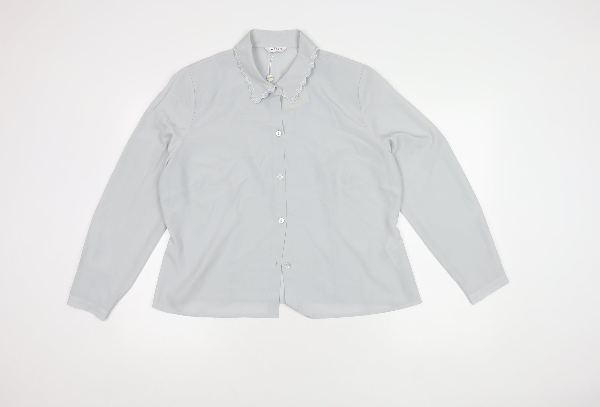Discover elegance with the Eastex Women's Grey Button-Up Blouse. This sophisticated blouse, crafted from 100% polyester, offers a comfortable and lightweight feel, perfect for both business and casual occasions. Designed for a regular fit, it features long classic sleeves that provide a timeless silhouette. The collared neckline adds a touch of refinement, while the button closure ensures ease of wear. Embroidered accents enhance the subtle elegance of this solid-patterned blouse, making it an ideal choice for spring and autumn wear. The versatile grey colour pairs effortlessly with a variety of wardrobe staples, allowing for a seamless transition from the office to a casual outing. Machine washable for easy care, this blouse is both practical and stylish. Elevate your wardrobe with this high-quality piece from Eastex, perfect for the modern woman who values both comfort and style.
