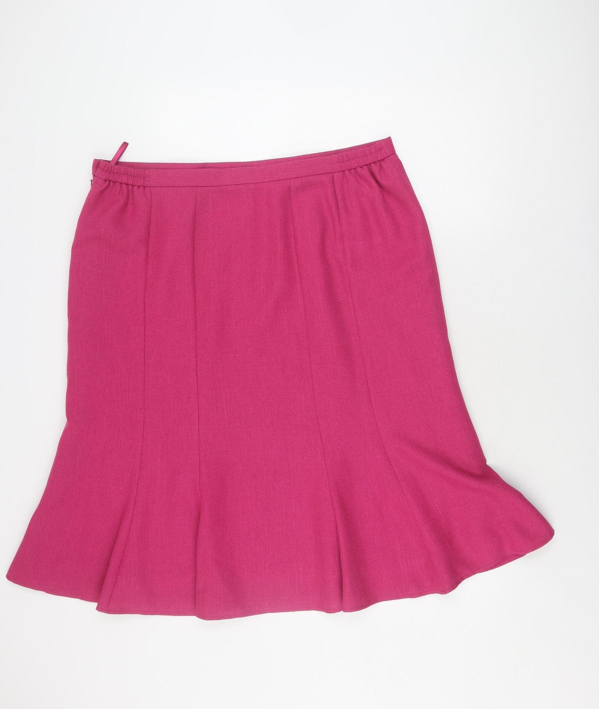 Elevate your wardrobe with this vibrant pink skirt from Eastex, tailored for sophistication and comfort. Designed for women who love to merge style with practicality, this skirt is crafted from high-quality polyester ensuring durability and easy maintenance. It's perfectly suited for any casual occasion, being machine washable and resistant to wrinkles. The skirt falls elegantly to knee length, adding a touch of classic style to your ensemble. The zip closure provides a seamless finish, maintaining a sleek silhouette. Ideal for all seasons, this piece promises versatility, pairing effortlessly with various tops for different looks. With no visible patterns, it offers a clean canvas to highlight your accessories. There are no signs of heavy wear, aside from a minor dot mark, making it a smart addition to your collection. This skirt brings a pop of colour to your wardrobe, sure to make a statement wherever you go.