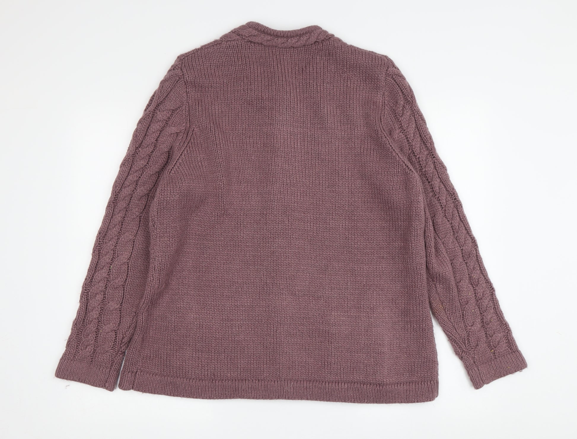 Elevate your winter wardrobe with this Eastex Women's Purple Cardigan, perfect for adding a touch of classic elegance to any outfit. Crafted from a luxurious wool blend, this cardigan ensures warmth and comfort, making it an ideal choice for the chilly season. The beautiful cable-knit design adds texture and style, complemented by the collared neckline for a sophisticated look. This cardigan features a rich purple hue, allowing you to stand out fashionably during the autumn and winter months. The long sleeves provide ample coverage, while the oversized fit accentuates a relaxed and casual vibe, making it versatile for various occasions. Button accents add a functional flair, ensuring the cardigan can be styled open or closed to suit your mood. Being machine washable, it offers convenience alongside style, making it a practical addition to your everyday attire. Despite slight wear, this piece is in very good condition, ready to imbue your collection with timeless charm. Easily pair it with jeans for a casual outing or over a dress for a more polished appearance. Experience comfort, quality, and style with this stylish women's cardigan, crafted to enhance and complete any ensemble with ease.