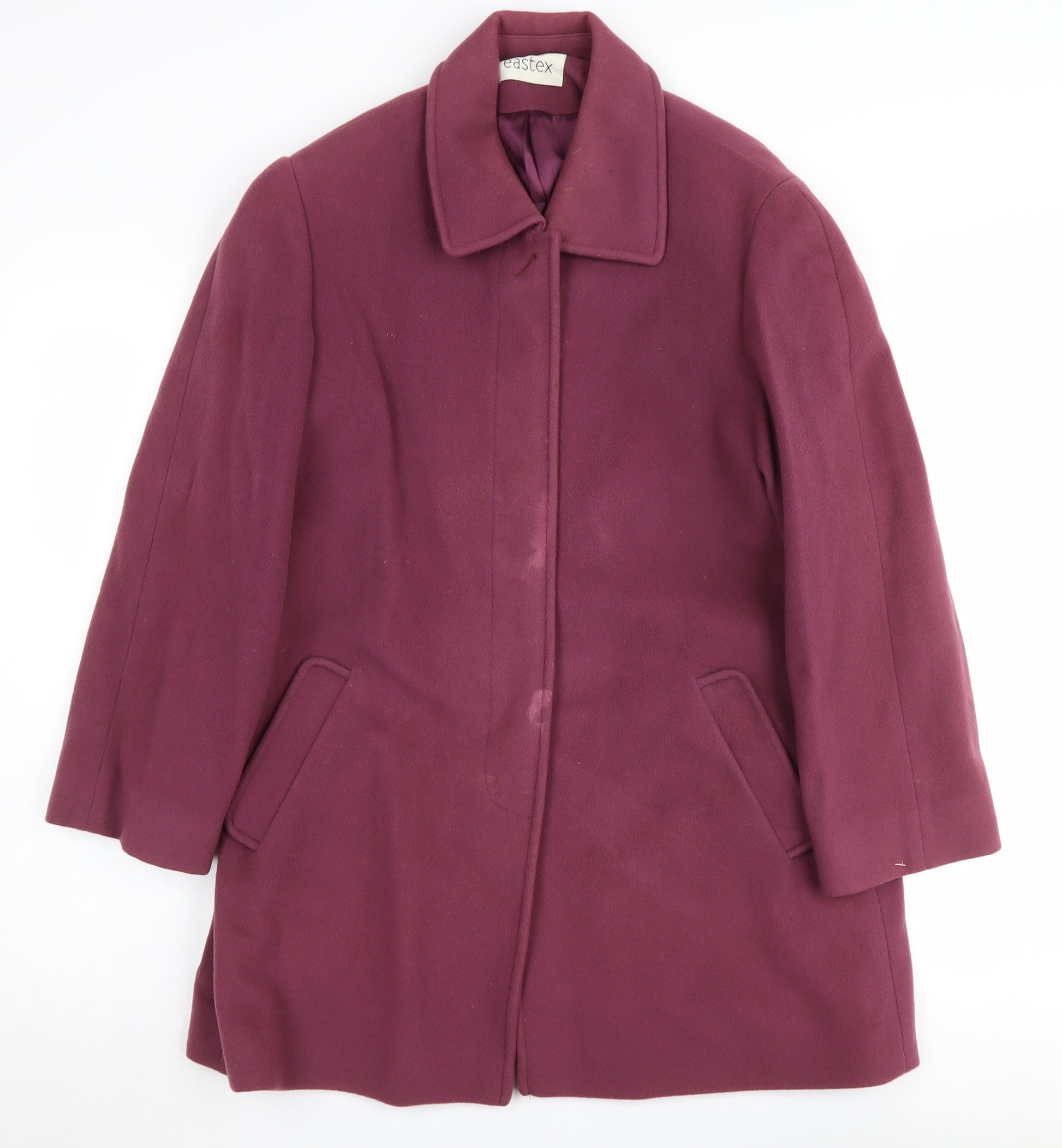 Elevate your autumn and winter wardrobe with this sophisticated Eastex coat, designed for the modern woman who appreciates both style and comfort. This elegant overcoat, tailored in a rich purple hue, exudes timeless charm that seamlessly transitions from business meetings to casual outings. Crafted from a luxurious blend of Wool, Cashmere, and Polyamide, this coat ensures warmth and durability, making it a staple for colder months. The coat features a classic collared neckline and is mid-length, providing ample coverage and a flattering silhouette. Fully lined with quality acetate, it promises a smooth fit over any outfit. Convenience and functionality are at the forefront with its button closure, perfect for those crisp autumn or winter days. Despite its elegant design, it is practical enough for everyday wear, be it formal or business occasions. Please note a slight discolouration on the front, which is a minor detail considering the coat's overall excellent structure and aesthetic appeal. Embrace the regular fit that comfortably allows layering underneath, suitable for any ensemble. Maintain its pristine condition with recommended dry cleaning. Ideal for those who seek a blend of luxury and versatility, this Eastex coat in size 10 is your go-to piece for reliable warmth and unmatched style.