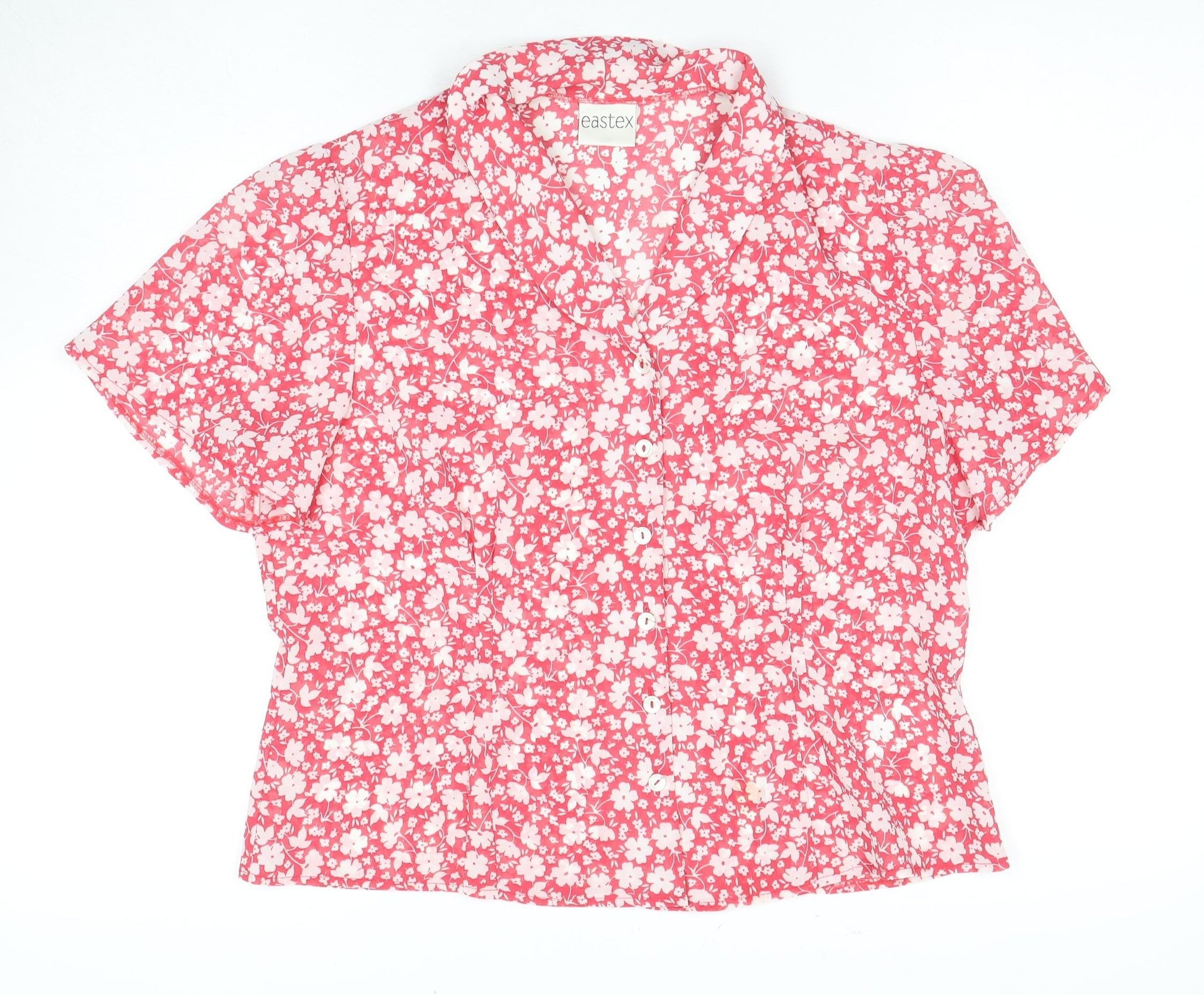 Add a pop of colour to your wardrobe with this charming Eastex Women's Blouse. Perfect for both spring and summer, this item is crafted from lightweight viscose, ensuring a breathable fit all day long. Its vibrant red floral design is both timeless and eye-catching, making it ideal for casual outings. The blouse features a classic collared neckline and short sleeves, providing a refined yet relaxed look. Designed for regular fit, it offers comfort without compromising on style. The button closure adds a touch of sophistication while allowing for easy wear. Whether you're dressing it up for a lunch date or going about your daily errands, this blouse ensures you look effortlessly chic. Experience the perfect blend of style and comfort with this delightful addition to your collection. Machine washable for your convenience, this top is not only stylish but practical too, requiring minimal maintenance. A truly versatile piece, it captures the essence of contemporary fashion with a nod to classic design principles. Don't miss the opportunity to make this stunning blouse yours today.