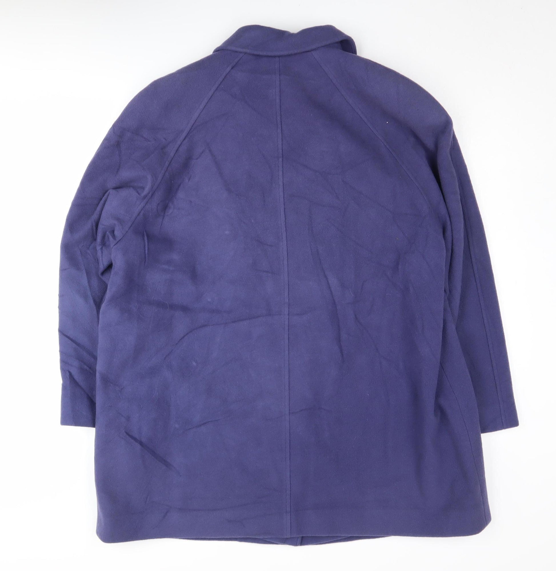 Women's Blue Wool Mid-Length Overcoat, Size 16